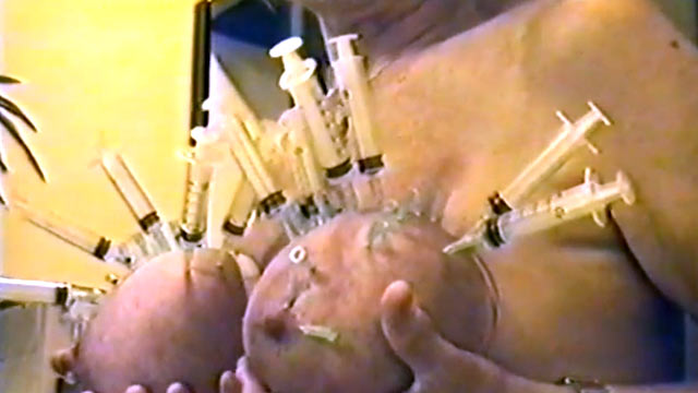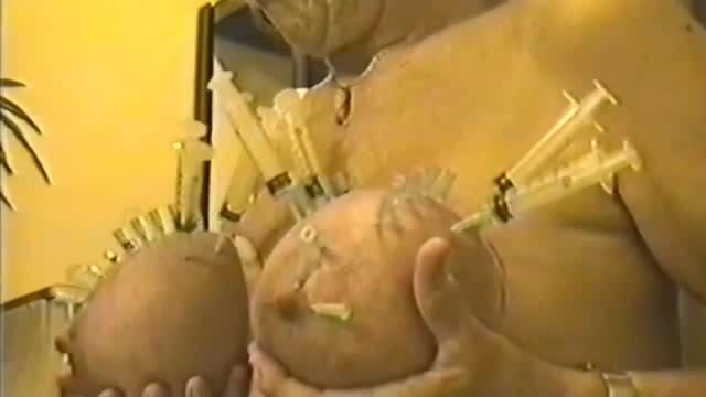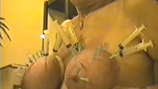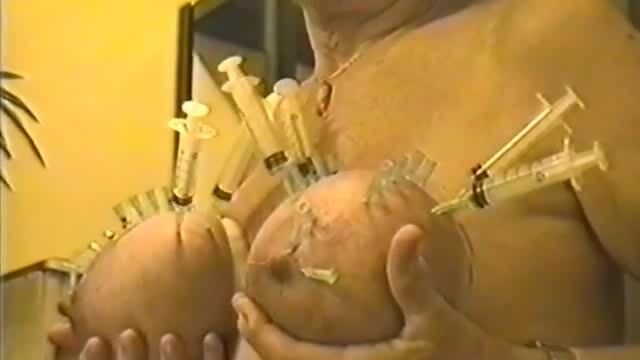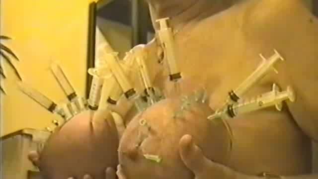 Mature masochist woman gets hundreds of needles and syringes in het tits. Young and novice masochists can only envy her resilience and tolerance.