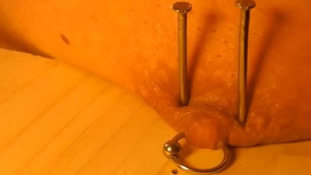 Nailing of boobs to the board is always spectacular. Add a dozen of needles to each nipple. Take a closer look at the details as it happens.