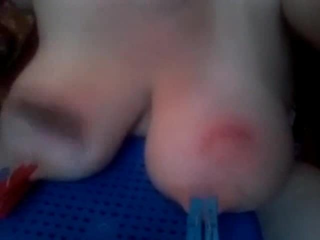 Russian housewife received orders from her Master to punish her boobs without him. She put her big tits on a chair and attached clothespins to her nipples. Then she began to stroke her boobs with wooden cooking spoon. She counted fifty strokes and thanked