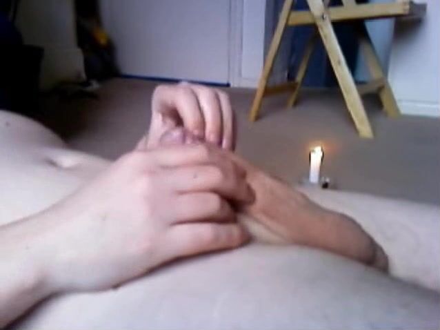 Man playing with hot wax for his cock. This is very painful when hot wax dripping directly on the penis