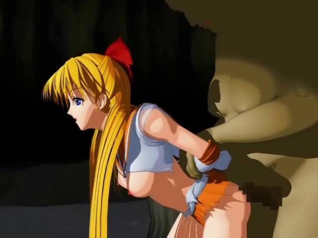 Chained 3D anime blonde gets her every hole drilled by a monster