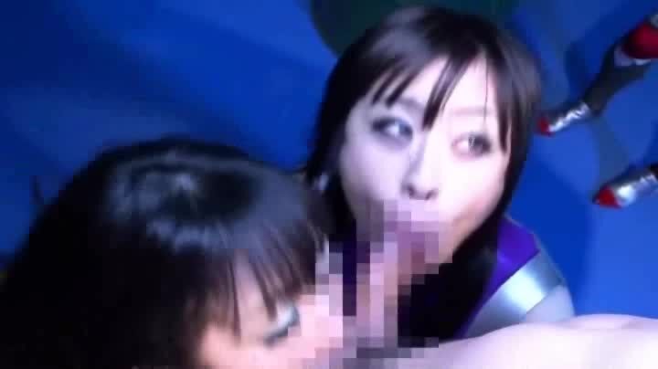 Busty asian babe and sexy asian girl sucking freaky monster dick