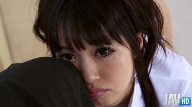 Kotomi in a schoolgirl uniform teaes her man by crawling along the floor to his hard dick