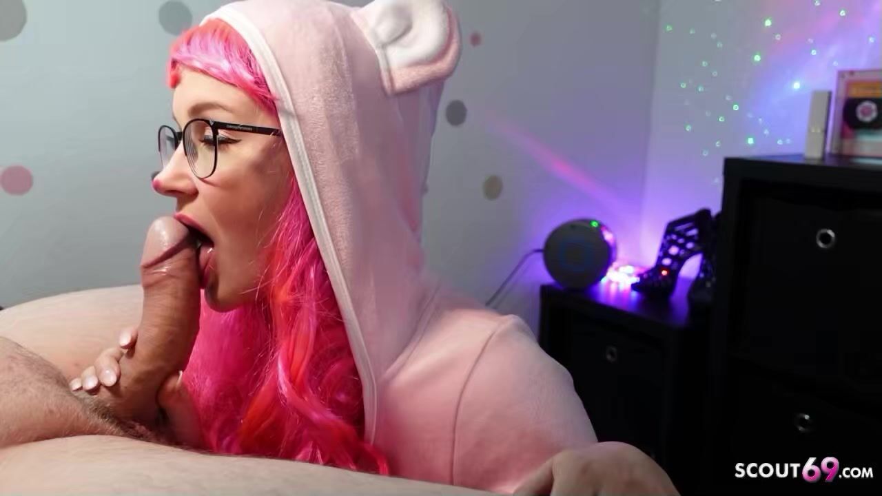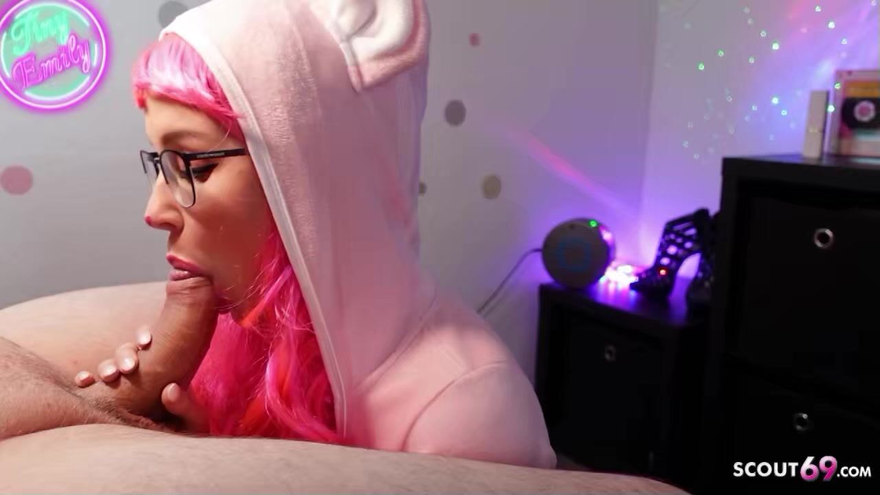 Petite German Step-Sister give POV Blowjob after Cosplay Event in Costume