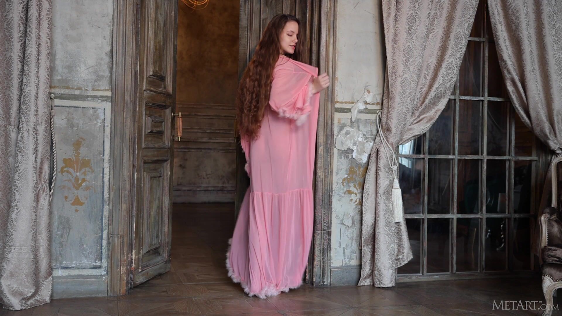 Stunning brunette Flamy Nika is wearing a pink peignoir that’s open at the front, leaving her perfect body exposed. The captivating natural beauty smiles flirtatiously as she runs her hands over her silky skin, caressing her lovely breasts. She lets her flimsy outfit slip to the floor and lounges in an armchair, spreading her slender thighs for an intimate view of her hairy pussy. Kneeling, she wiggles her sexy ass invitingly, her gorgeous green eyes bright with pleasure at sharing this sensual moment with you.