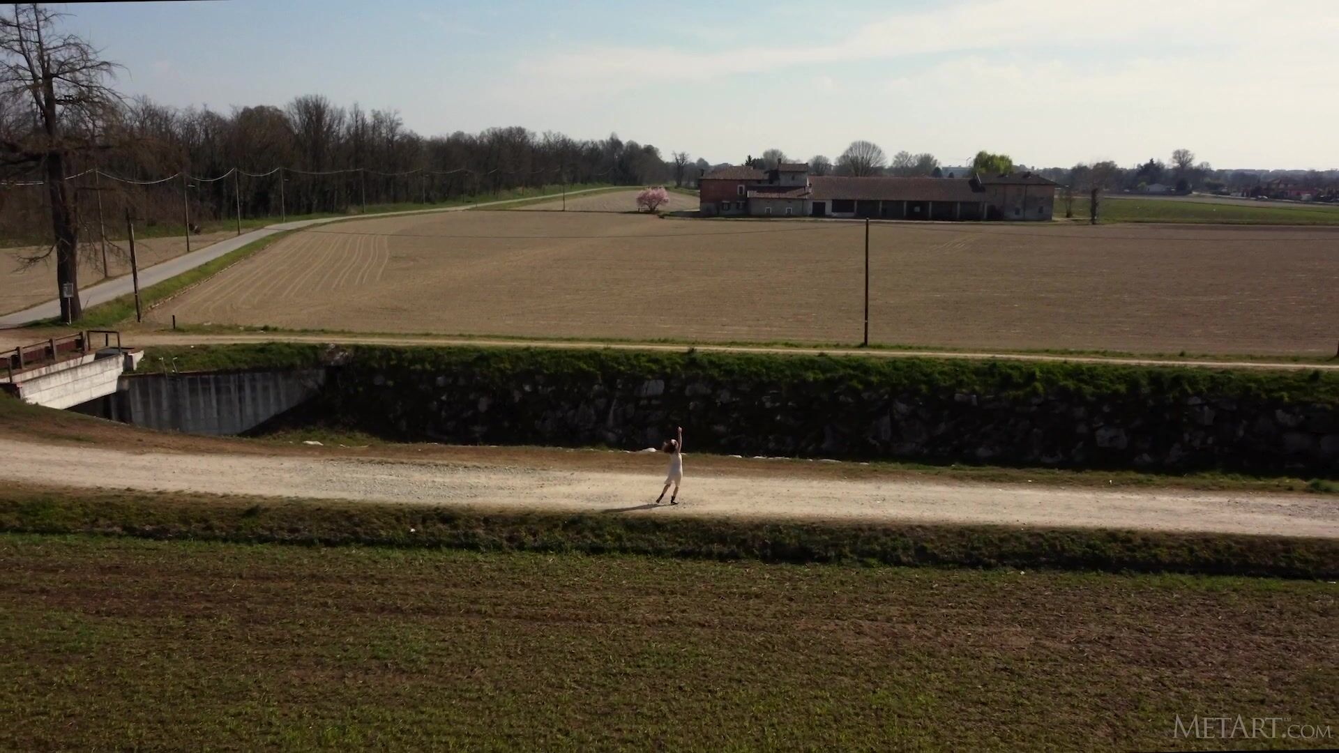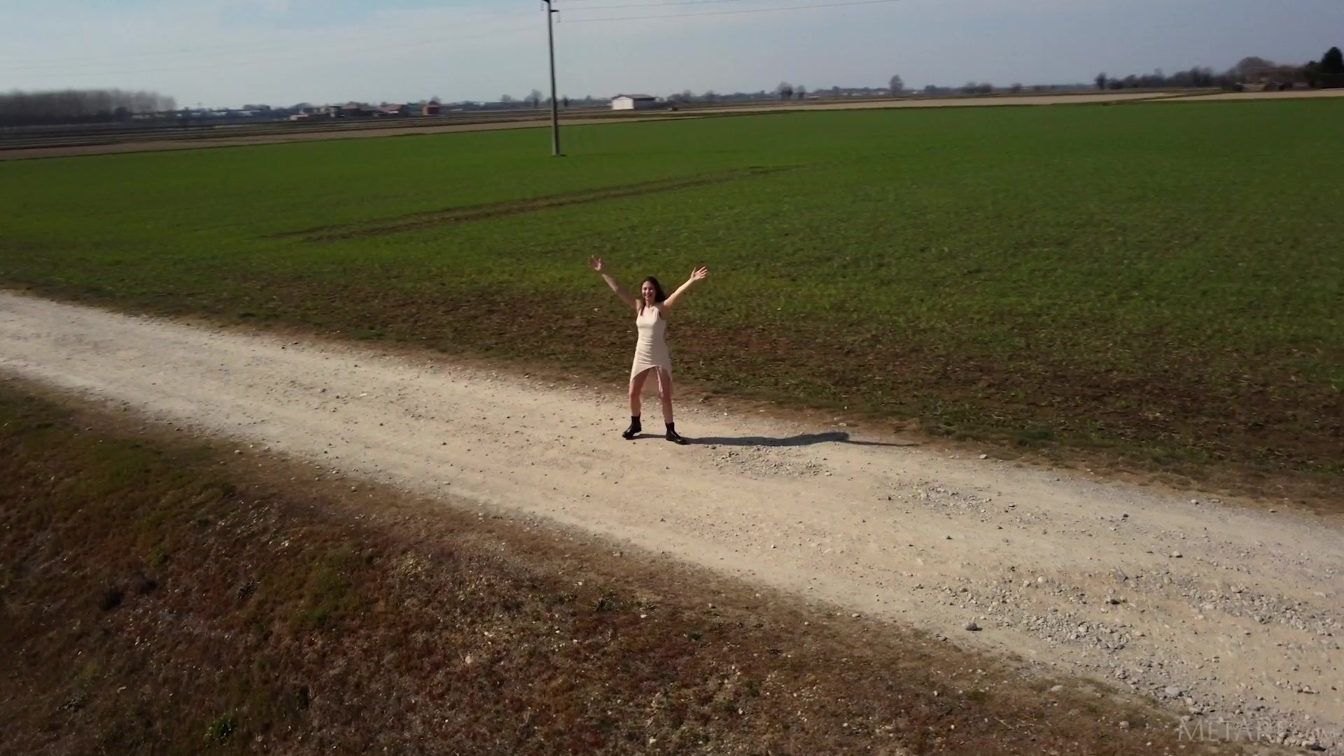 Stunning Hilary C strolls along a country road, twirling playfully and flashing her sexy ass. In the studio, she takes off her figure-hugging dress to reveal her gorgeous body in a strappy harness that conceals precisely nothing. She drizzles oils over her perky breasts and luscious ass cheeks to make them glisten, massaging it in sensuously. Stripping and dancing provocatively, the naked brunette kneels to offer a closer look at her lush-lipped pussy, then goes head over heels to ensure you appreciate her sensual beauty from every arousing angle.