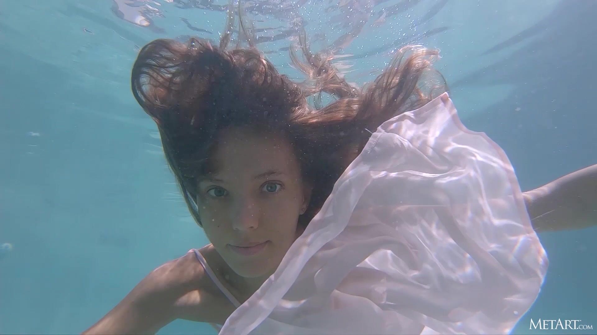 Stunning Mango A strolls along the beach, then sits on the edge of the swimming pool, trailing her hands through the water. The seductive blue-eyed beauty swims in the sunshine, her dress floating around her and exposing her perfect body. Graceful as a mermaid, irresistible as a siren, she shares her sensual nature in intimate close-ups and artistic impressions.