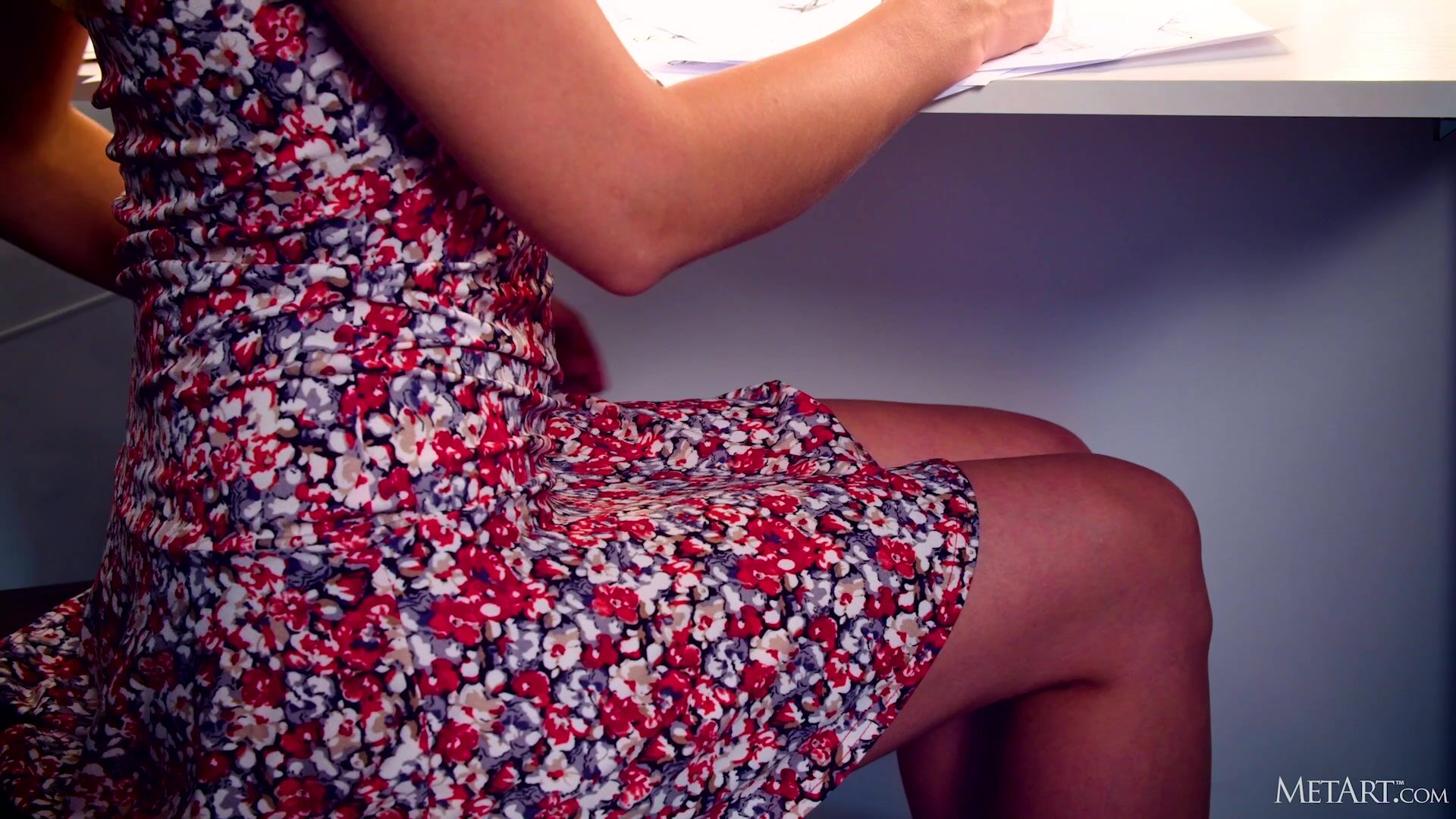 Stunning brunette Hilary C is sitting at her dressing table, sketching fashion designs. The green-eyed beauty is in a flirtatious mood, running her hands over her gorgeous body and parting her long legs to flash her cotton panties. Smiling naughtily, she tugs her panties aside, then slides them down over her curvy ass cheeks. Taking off her dress, she caresses her perfect breasts, her nipples hard as diamonds. The naked sweetheart removes her high heels and spreads her thighs to show the neat bush that crowns her hot pussy, succulent folds flushed pink with excitement. Moving seductively, she kneels for a mindblowing rear view of her sexy ass.