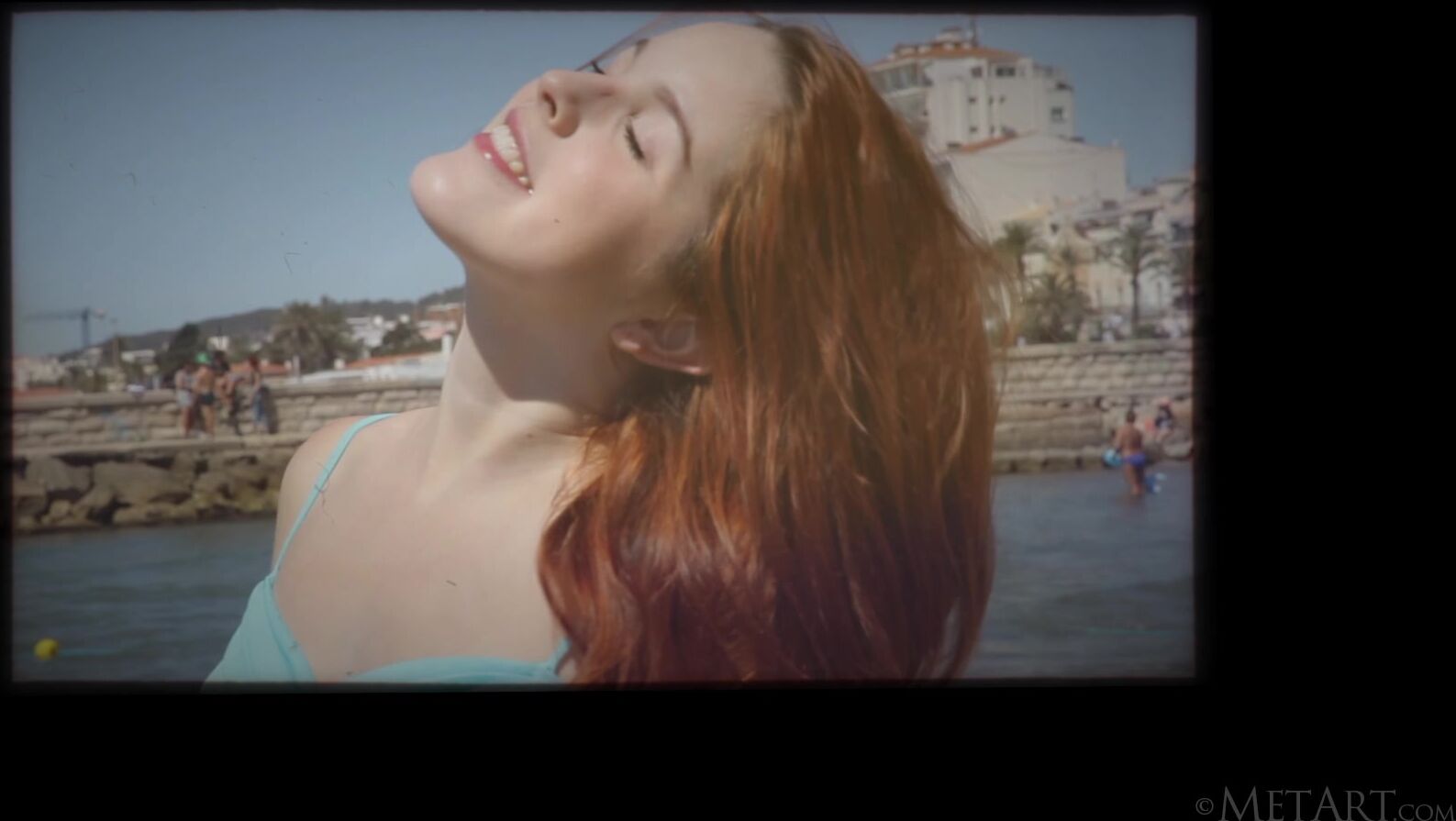 Sexy Spanish model Amarna Miller goes from being barefoot on the beach to performing a sensual striptease in the yard of her apartment. The gorgeous redhead runs her hands up and down her slender legs, before crouching and rubbing the dress back and forth between her thighs, occasionally lifting it to give quick flashes of her hot pussy with its hairy triangular crown. Having pulled the dress down to her waist and tugged naughtily on her pert breasts, she gets on her knees and openly flaunts her hot ass. Once naked, the flirty fox can't stop squirming around on a lounger, as her porcelain pale body gets stimulated by the afternoon sun.