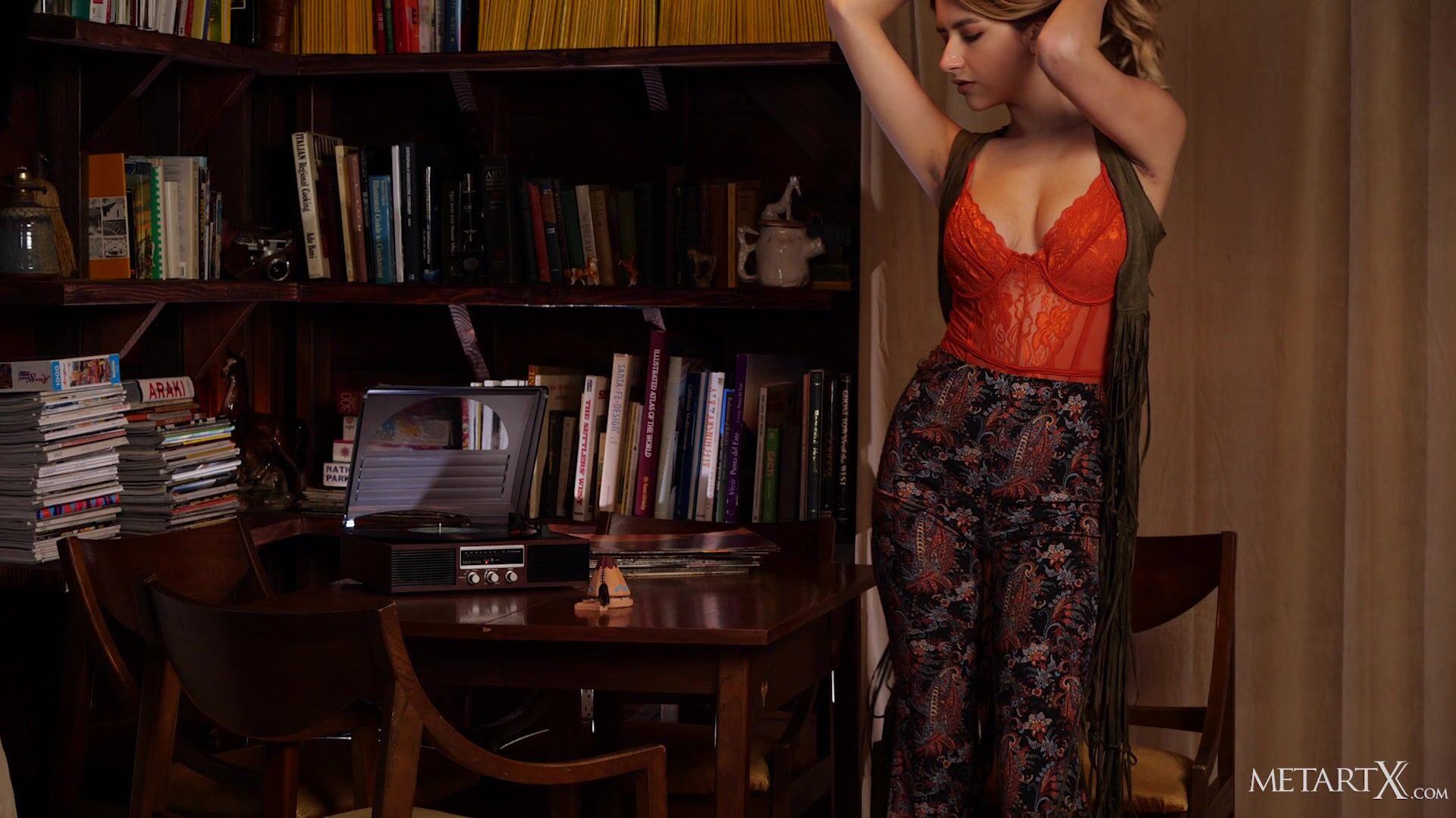 Gorgeous American blonde Gina Marie runs her hands over her sexy body as she pulls down the straps of her lace lingerie to expose her lovely big breasts. Wriggling out of her clothes, the sultry Hispanic beauty perches on the kitchen counter of her cozy cabin and begins to stroke her shaved pussy. She gasps with arousal as her fingers work their magic, strumming her clit frantically, her breasts jiggling. Moving to her favorite chair, she spreads her long legs wide and masturbates avidly, giving herself an intense orgasm.