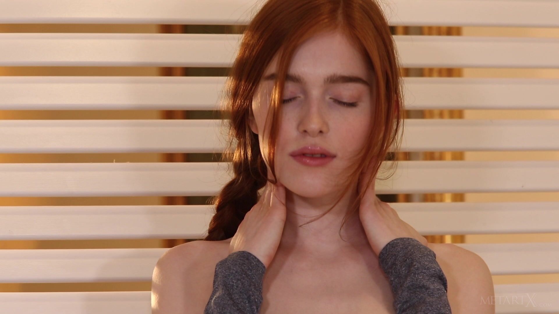 Gorgeous redhead Jia Lissa returns home from sightseeing to indulge her sensual desires. Running her hands over her sexy body, the pigtailed beauty parts her thighs to reveal her bare pussy, a cute strip of natural red bush leading down to her hot pink lips. She licks her fingers and strums her clit, letting out little moans and gasps of pleasure as the horny sensations flood through her. Lying back, the seductive Russian sweetheart masturbates with both hands, moving to her knees to fingerbang herself harder and deeper. Naked, she unbraids her long hair, shivering with arousal as she frigs herself to an intense orgasm.