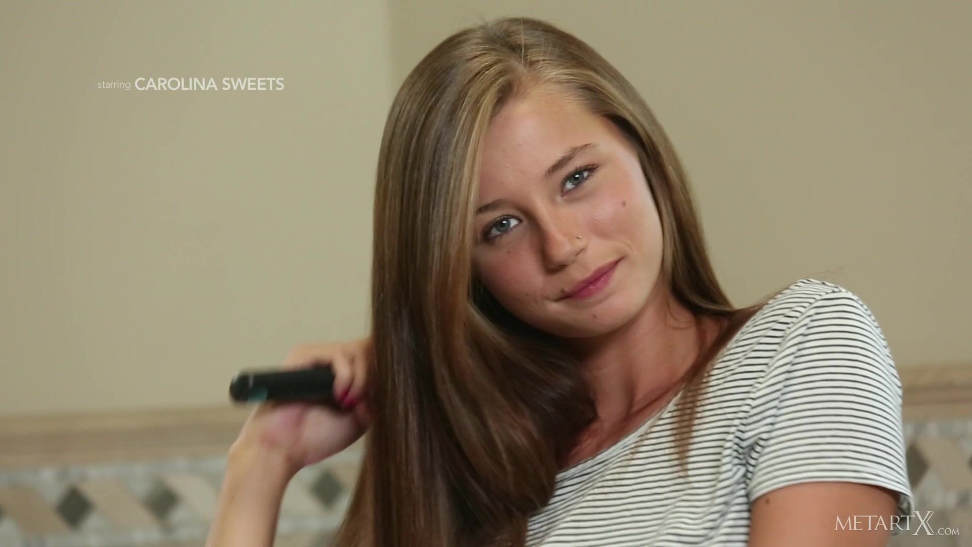 Squeaky-clean Carolina Sweets sits on the edge of a bathtub brushing her luxurious, long hair. The American darling parts her legs and tugs her panties up inside her pussy slit, she’s feeling really horny. A notion underlined when she pulls down her top to pop out her beautiful, pert breasts, before getting on her knees, yanking her panties to one side, and exposing her plump, shaved pussy. Once the insatiable sex kitten is naked, she sucks on her fingers, drives two of them deep inside her pussy, and rides them to an extreme, body quaking orgasm.