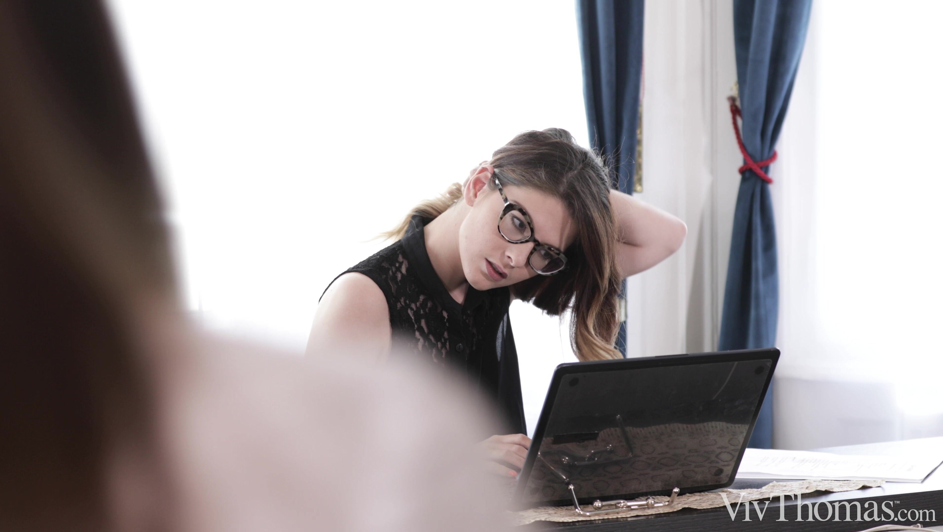 Cute brunette Sara Bell makes coffee before starting work, wearing nothing but her panties. As Sandra Shine’s erotic lesbian movie “Home Office Heat” begins, she starts to get dressed while taking calls, looking more and more flustered, until her playful girlfriend Kylie Green provides the perfect distraction. Sara watches Kylie’s sultry striptease appreciatively, then closes her laptop and kneels between her sweetheart’s spread thighs. Kylie gasps with arousal as Sara eats her shaved pussy, lavishes attention on her diamond-hard nipples, then sucks her clit to drive her wild. Straddling Kylie’s face, Sara gets licked until she’s at fever pitch too, then spins around into a sixty-nine so they can pleasure each other in unison. Sara is first to orgasm, her moans reaching a crescendo as she trembles and shakes. Catching her breath, she dismounts and resumes lapping at Kylie’s pussy to make her climax too, her work completely forgotten.