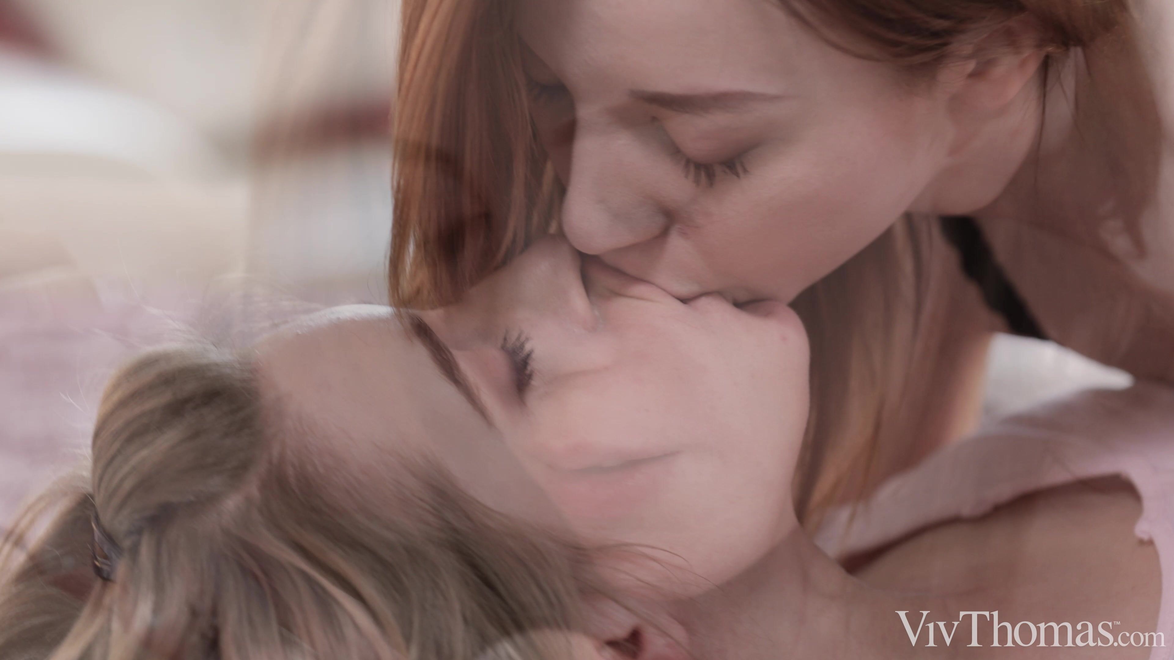 Gorgeous girlfriends Freya Mayer and Lottie Magne are taking a vacation together, as Sandra Shine’s hot lesbian movie “Holiday Surprise” begins. Exploring their apartment, they find the key to a locked room that contains a wardrobe full of glamorous lingerie. They return to their bedroom, cute redhead Lottie kissing her way down her sweetheart’s body, sucking her nipples, then peeling off her tight jeans and lace panties. She strokes and licks Freya’s shaved pussy until the blonde is writhing in pleasure, then straddles her face to get her own pussy eaten. Her nipples are diamond-hard as Freya laps at her clit, and she spins around into a sixty-nine so they can lick each other in unison. Lottie is first to orgasm, trembling in ecstasy. When she’s caught her breath, she dismounts and sucks Freya’s soaked slot even more voraciously, giving her a blissful climax. It’s the perfect start to their romantic vacation.