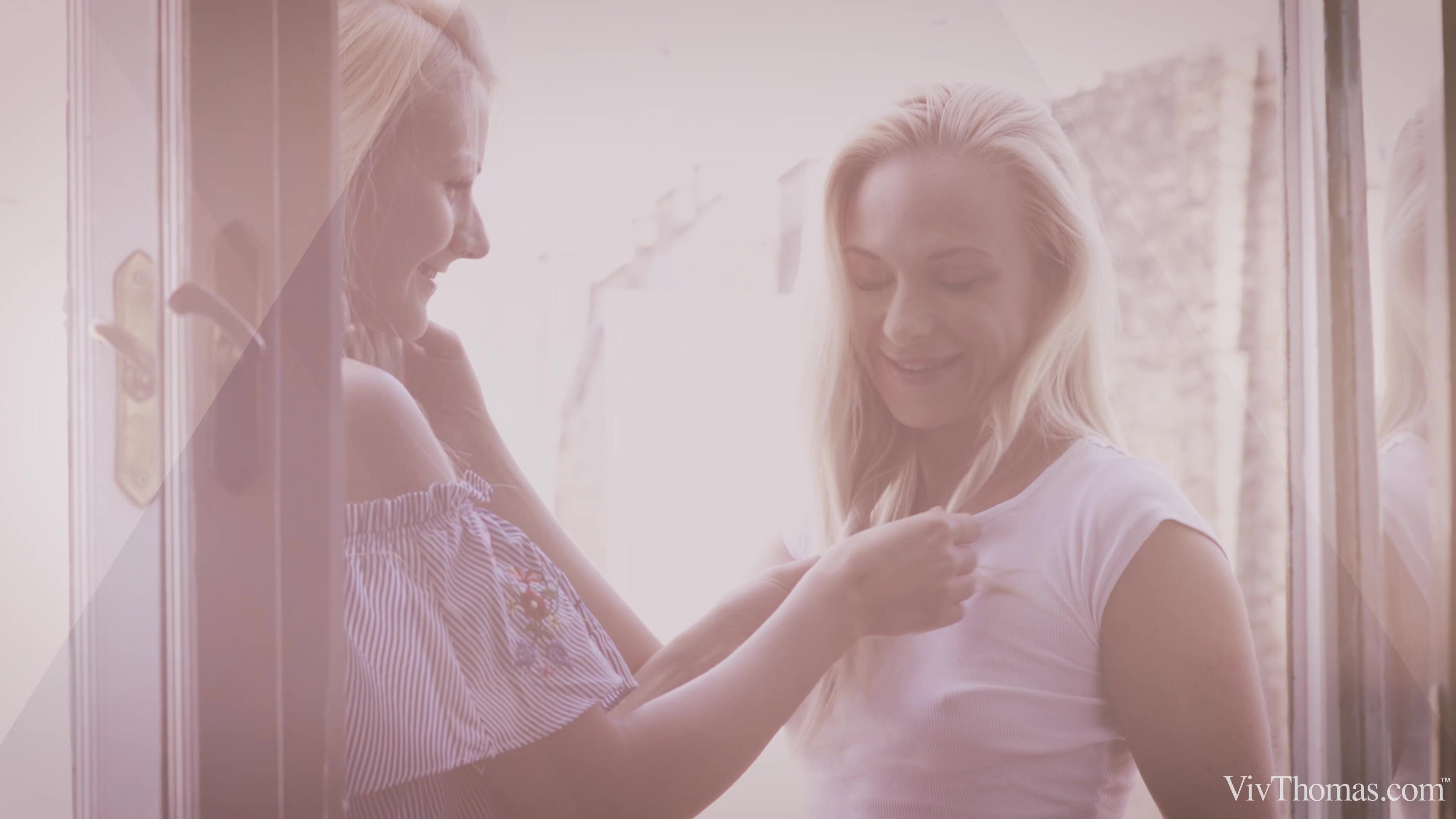 Beautiful blondes Katy Sky and Cristal Caitlin drive each other crazy with flirtatious touches, as episode one of Sandra Shine’s erotic movie series “Tease” gets underway. When they can no longer resist each other, Cristal straddles Katy on the bed, pinning her down and kissing her hungrily. Her lips and hands seek out Katy’s perfect breasts, pushing them together and teasing the nipples to stiffness with her tongue. Licking her way down Katy’s undulating tummy, she sucks her pussy through her tight panties, then tugs the fabric between her lips and rubs them back and forth over her clit. Katy fondles her own breasts as Cristal eats her shaved pussy skilfully, taking off her own panties and stroking them over Katy’s face so she can smell the musky aroma of her pussy on them. Cristal turns around to straddle Katy in a sixty-nine, lowering her shaved pussy onto her girlfriend’s eager mouth to get licked. Katy flickers her tongue in and out of Cristal’s juicy pink folds, sucking and lapping delicately. Soon they are finger-banging each other frantically, teasing forgotten as the powerful sensations overwhelm them. Katy goes face down, ass up, and Cristal frigs her pussy while rimming her tight asshole, driving her headlong into an intense climax. Now Cristal is aching to cum herself, sitting on Katy’s pretty face to get eaten to an all-consuming orgasm, her lovely breasts jiggling and her entire body quivering. They kiss tenderly through the afterglow, the thrill of anticipation amply rewarded.