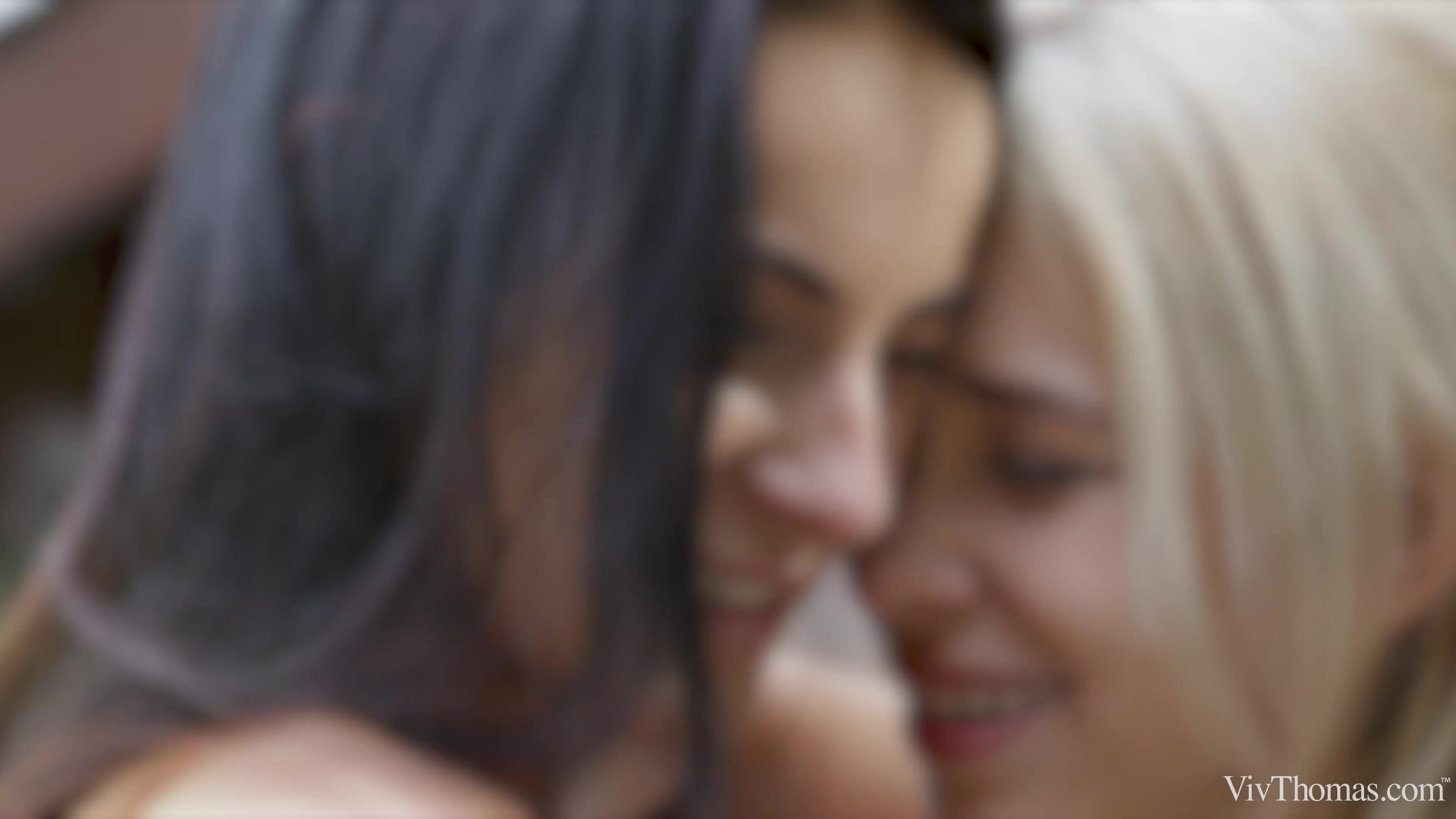Busty blonde Arteya meets hot brunette Lexi Dona while riding a tram, as episode three of Sandra Shine’s erotic series “The Pick Up” begins. They end up going hiking together, and when they take a break they make a move on each other. As they sit on a bench in the woods, kissing passionately, sultry sweetheart Lexi pops out one of Arteya’s beautiful big breasts and tweaks the nipple teasingly, before slipping it between her lips and sucking it until it stiffens. Instantly obsessed with Arteya’s boobs, Lexi can’t keep her hands and mouth off them, and Arteya is equally enamored by Lexi’s slender, sexy body. She lies back so Lexi can peel off her shorts and panties and lap at her shaved pussy, tonguing her clit expertly. Arteya moves to her lap and Lexi frigs her pussy, slipping her slick fingers in her mouth so she can taste herself, then diddling her harder and faster, making her moan and tremble through an intense orgasm. Arteya slips her hand into Lexi’s panties, rubbing her pussy frantically, then takes them off and licks her visibly juicy pussy voraciously. Lexi’s climax is overwhelming. As they dress and go on their way, hand in hand, Arteya chalks a love message on the wall, suggesting this pick up may lead to a lasting erotic connection.