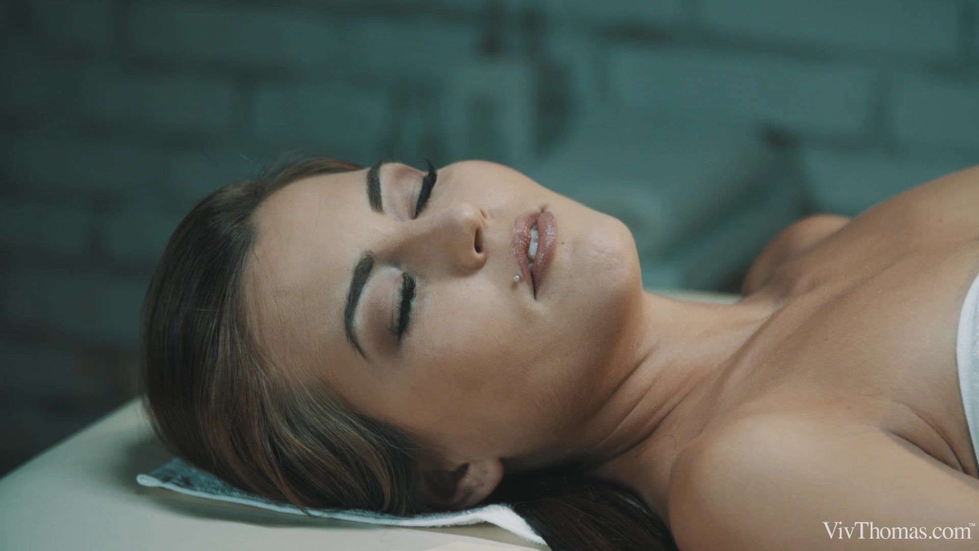 Cute Cindy Shine undresses, ready for her session with her sexy masseuse, as episode two of Nik Fox’s erotic series “Full Body Massage” begins. Wrapped in a tiny towel, leggy beauty Cindy perches on the massage table, until gorgeous Alexis Crystal instructs her to lie back and relax. The masseuse lets her hands linger over Cindy’s tanned thighs, then peels her towel open and caresses her naked body with sensitive strokes. She mounts the table and sits astride her lovely client, squeezing her breasts, pinching and teasing her nipples until they stiffen. When she pulls off her own skimpy top and turns around to present her perfect ass to Cindy, the horny brunette can’t lie still any longer. She tugs down Alexis’s skintight yoga pants to reveal her pussy, feasting her eyes on the sight. Alexis pours oil over herself, smoothing it all over her silky skin, then lies on top of Cindy and rubs against her until they are both slick and shiny. They kiss hungrily, all that pent-up lust suddenly given free rein, pressing their slippery breasts together. Moving into scissors, they grind on each other, both breathing heavily as the intense sensations flood through them. Cindy raises her legs high in the air and Alexis spreads her pussy open and laps at her clit avidly. Horny Alexis needs to get her pussy pleasured now, straddling Cindy’s pretty face to get licked until she’s shuddering through her orgasm. She moves into spoons to finger-fuck Cindy to a powerful climax, the pussy cream smeared over her inner thighs evidence of her extreme arousal.