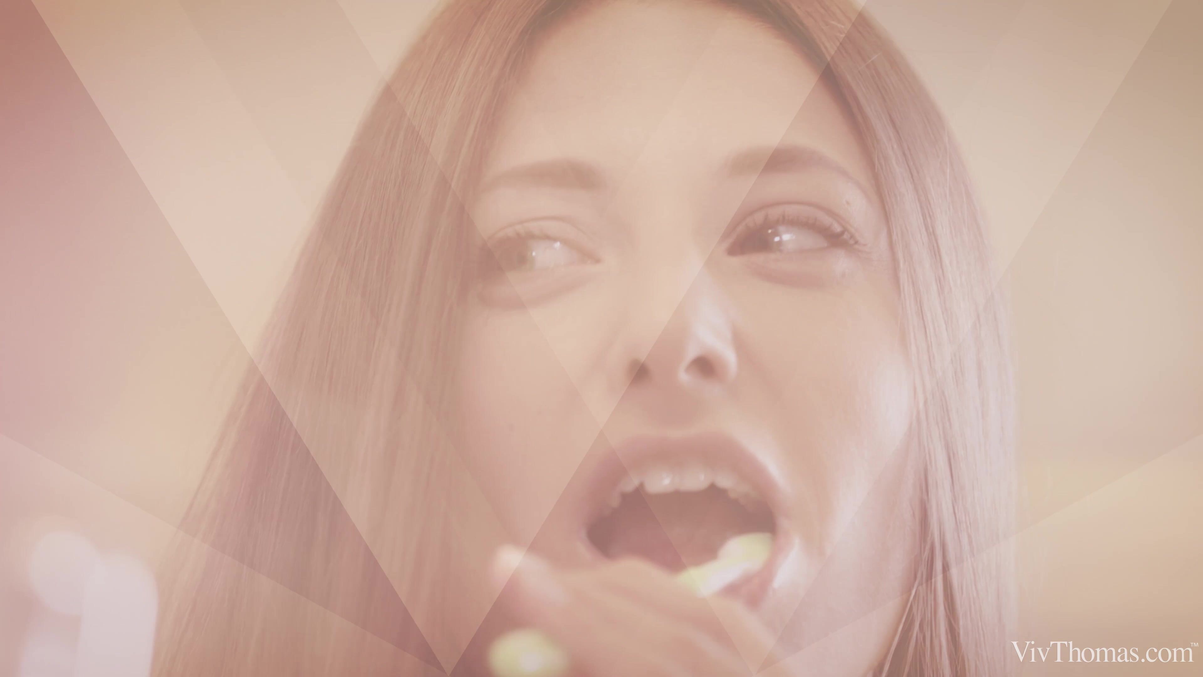 Hot blonde MILF beauty Kathy Anderson meets with gorgeous raven-haired Terra Twain as episode two of Andrej Lupin’s erotic movie “Enjoy Me” begins. It’s a chance encounter that leads to the two mature lesbian babes heading back to Kathy’s place for a hot sex session. Kathy soon has Terra on the couch, stripped to her lingerie and stockings, as she kneels between her thighs and pushes a glass dildo into Terra’s wide-open mouth. The horny brunette sucks on the toy like it’s a real cock, bobbing her head, opening wide with her tongue out to take it all the way back. Kathy likes to dominate, undoing Terra’s panties and using the ridges of the dildo to tantalize her shaved pussy, rubbing them over her clit. When Terra can’t handle the tease any longer, she grabs the dildo from her new friend and plunges it into her pussy, staring into Kathy’s eyes as she fucks herself. Kathy gets off on watching Terra’s pussy play, rubbing at her own slit, then takes control of the dildo and drills Terra deep and hard. Pressing her beautiful big breasts into Terra’s face and kissing her passionately, she fucks her until Terra is strumming her own clit, back arching in ecstasy. They lick Terra’s juices from the toy together, before Kathy turns her onto her knees, spanking and squeezing her hot ass. She spreads Terra’s cheeks and dribbles spit onto her asshole, working it in with her finger and then her tongue, eating her pussy and ass ravenously. Now Terra wants a taste, pushing Kathy onto her back and licking her pussy, sliding her fingers in as she laps at her clit, then grinding on her and sucking her nipples attentively. Kathy flips over onto her knees, offering her ass to Terra, who licks it avidly, getting it dripping wet. She plunges the dildo into Kathy’s soaked pussy, letting her thrust back onto it, fucking herself on the rigid mock cock. Her orgasm is intense, but Terra’s not about to stop just yet…