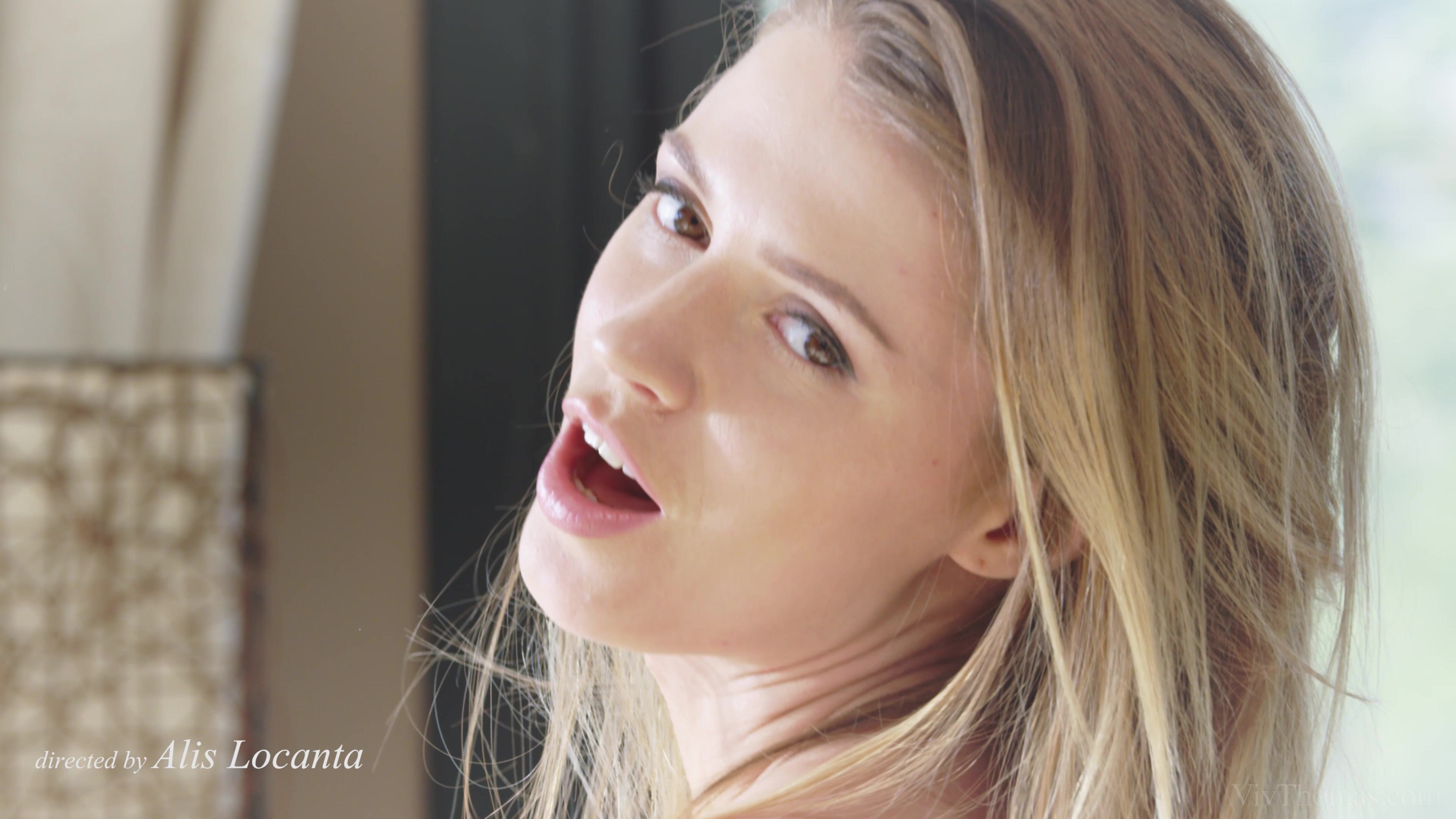 Sexy redhead Adel C sits naked watching her lover, slender cutie Kalisy, dance sensuously for her, at the start of episode three of Alis Locanta’s sensational “Angels Volume Two.” Captured in scintillating slow motion, Kalisy bends and dips to flash her partly shaved pussy, before removing her dress to expose her beautiful small breasts. As Kalisy’s hands caress every inch of her perfect body, Adel C does the same to her own, both babes evidently riding a wave of ecstatic delight. The action cuts to them in their white lingerie, kissing voraciously. Kalisy pulls down Adel’s bra, pops a nipple in her mouth and sucks on it, before taking off her panties and pressing herself hard against Adel’s naked body. The gorgeous girls undulate against each other, moaning with pleasure – Adel becoming the louder of the two when Kalisy slides a finger deep inside her shaved pussy and starts banging her rhythmically. Adel’s eyes close in ecstasy when Kalisy starts eating her pussy, first from the front, then from behind, with her face buried between Adel’s sweet ass cheeks and her tongue probing her wetness. Kalisy stands and thrusts two fingers inside Adel’s honey hole, working them in and out. The lovers move in unison, lost in pleasure, until Adel is overwhelmed by an orgasm that leaves her shaking and breathless. As she regains her senses, her fingers and tongue go into overdrive, delving deep inside Kalisy’s pussy and driving her to a climax. Physically drained, they kiss, bodies entwined like the lustful, loving “Angels” they are.