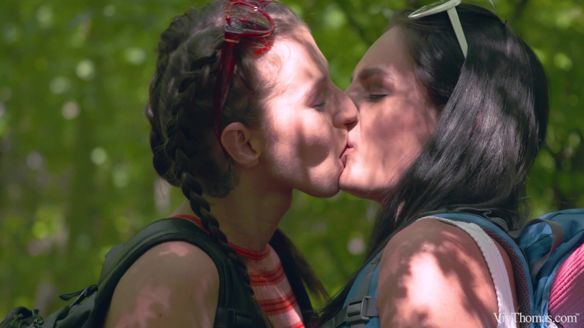 Horny hikers Emylia Argan and Lee Anne kiss and cuddle in a derelict house, as episode three of Nik Fox’s erotic series “One Hot Summer” begins. The insatiable lovers laugh mischievously as they start undressing, and are soon sucking on each other’s bare, beautiful breasts, tongues twirling around erect nipples. Busty babe Emylia, her hair in cute braids, pulls Lee Anne’s panties down and clamps her mouth around her pussy, lapping at her succulent slit. The faster Emylia licks, the louder gorgeous Lee Anne’s cries of pleasure become. They switch places, Lee Anne tugging on Emylia’s hairy muff, tongue dancing over her clit. Emylia takes control again, licking and fingering Lee Anne’s juicy pussy avidly, until her slender body quivers uncontrollably as she orgasms. Lee Anne wants to make Emylia cum too now, finger-banging her from behind, driving her to a powerful climax. As they wind down with wet kisses and loving caresses, it’s easy to imagine that their hiking adventure will be filled with many more impromptu pussy-pleasuring moments.