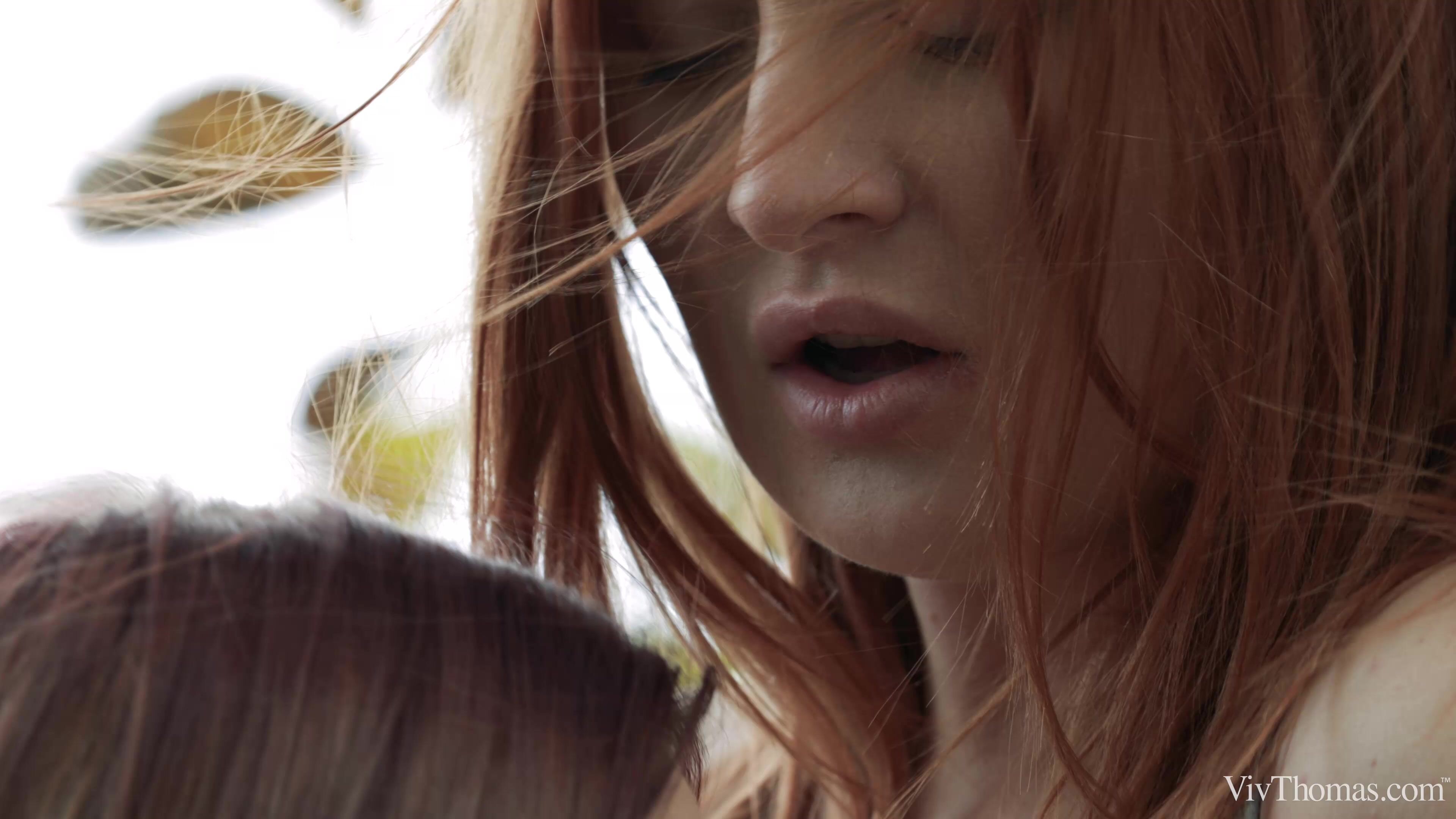 Red haired honey Eva Berger gets lost hiking in the countryside, as episode two of Sandra Shine’s steamy “Instant Attraction” begins. When she asks Lovenia Lux for directions, the cute brunette farm girl takes advantage of the situation by kissing Eva passionately. Eva responds eagerly, letting Lovenia push her against a tree and tug her shirt down to reveal her beautiful breasts. Lovenia sucks Eva’s nipples and slides a hand into her tight cut-offs, then pulls them down over her curvy ass and kneels to eat her shaved pussy. She slides her tongue up and down Eva’s wet slit, lapping at her clit, making the horny redhead gasp and smile with pleasure. Thrusting two fingers deep inside her sodden pussy, she tips Eva over the edge into a wild, noisy orgasm, her voluptuous body bucking uncontrollably against the rough bark of the tree. Lovenia leads Eva to a more private area of the yard, and the fiery redhead sucks on her small, perky breasts and pulls her panties aside to lick her shaved pussy skillfully. Lovenia straddles Eva’s lap in cowgirl and then reverse cowgirl, riding her probing fingers to an explosive climax. Finally Eva goes on her way, happy they both acted on their “Instant Attraction.”