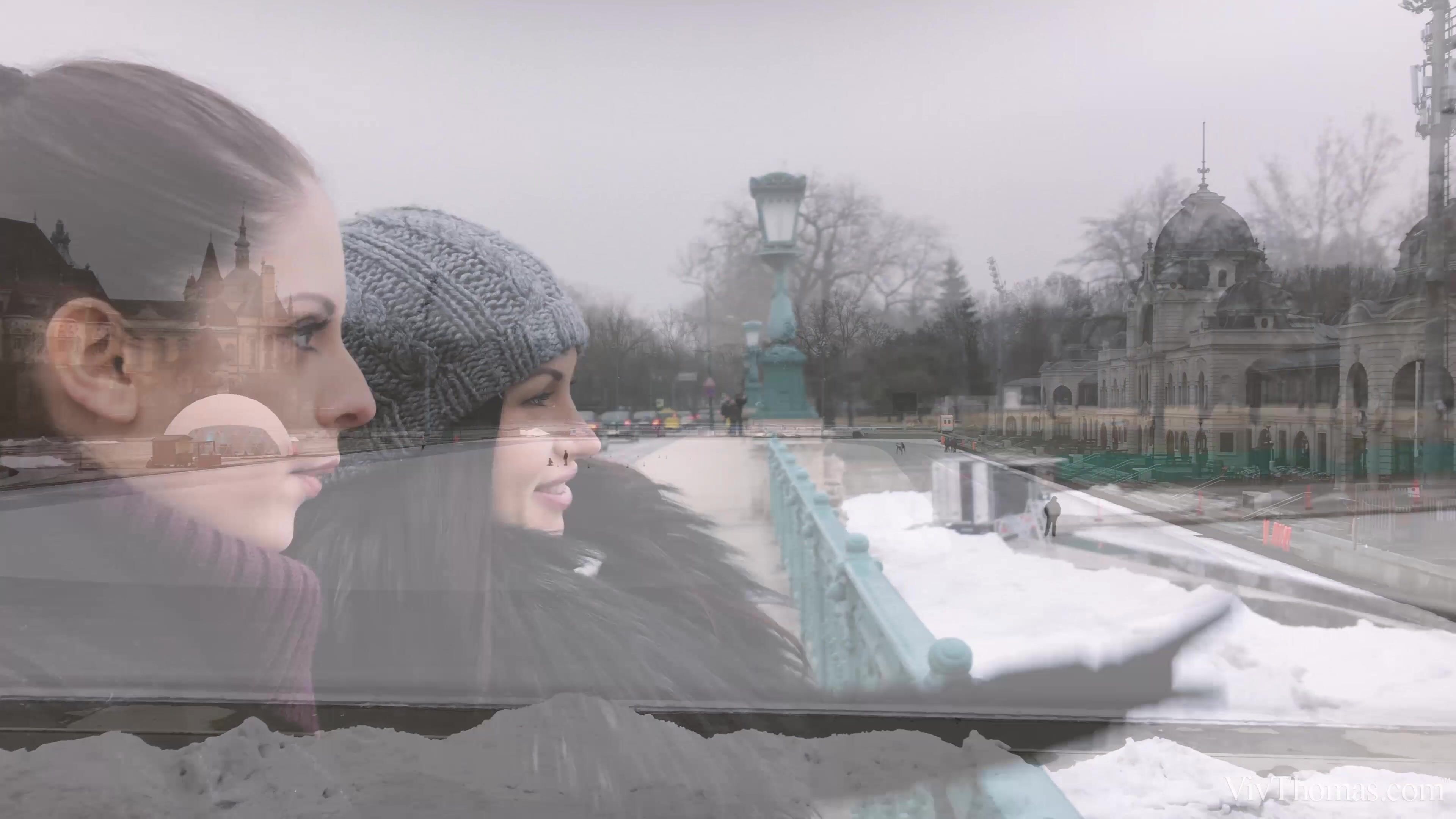 Cute Rebecca Volpetti is watching her sexy girlfriend Sasha Rose ice skate in the fabulous city of Budapest, as episode one of Sandra Shine’s “Winter Warmers” begins. The sexual magnetism between the two raven-haired beauties is undeniable, and they express it physically once they’re back in the warmth of their bedroom. They kiss voraciously, Rebecca taking control and straddling Sasha, pulling off her sweater to expose her voluptuous breasts. Sasha’s nipples stiffen as Rebecca sucks and flicks her tongue over them. Moving down Sasha’s body, Rebecca removes her panties and starts eating her pussy, causing Sasha’s body to writhe in ecstasy. Sasha starts massaging her own tits as Rebecca’s tongue flickers in and out of her honey-filled slot with its cute piercing, while Rebecca puts her hands under Sasha’s ass and raises her hips so she can delve even deeper. As Sasha races towards her climax, Rebecca flips her over onto her front, sucks her fingers and drives two of them deep inside Sasha’s fleshy folds. When she replaces her drilling digits with her tongue Sasha goes wild, letting out a delirious cry of pleasure as she orgasms. Rebecca runs her tongue between Sasha’s sopping pussy and her ass, then straddles her and lowers her shaven pussy onto her lover’s mouth. Sasha buries her face between Rebecca’s legs and thrusts her slick tongue deep, alternating between savoring her juicy hole and stimulating her clit. Rebecca lies back for Sasha to eat her even more ravenously, using her fingers to drive Rebecca towards orgasm. Rebecca’s body undulates to the rhythm of Sasha’s tongue thrusts as she climaxes. When it comes to “Winter Warmers,” these gorgeous girls know there’s nothing better than sex for raising the temperature.