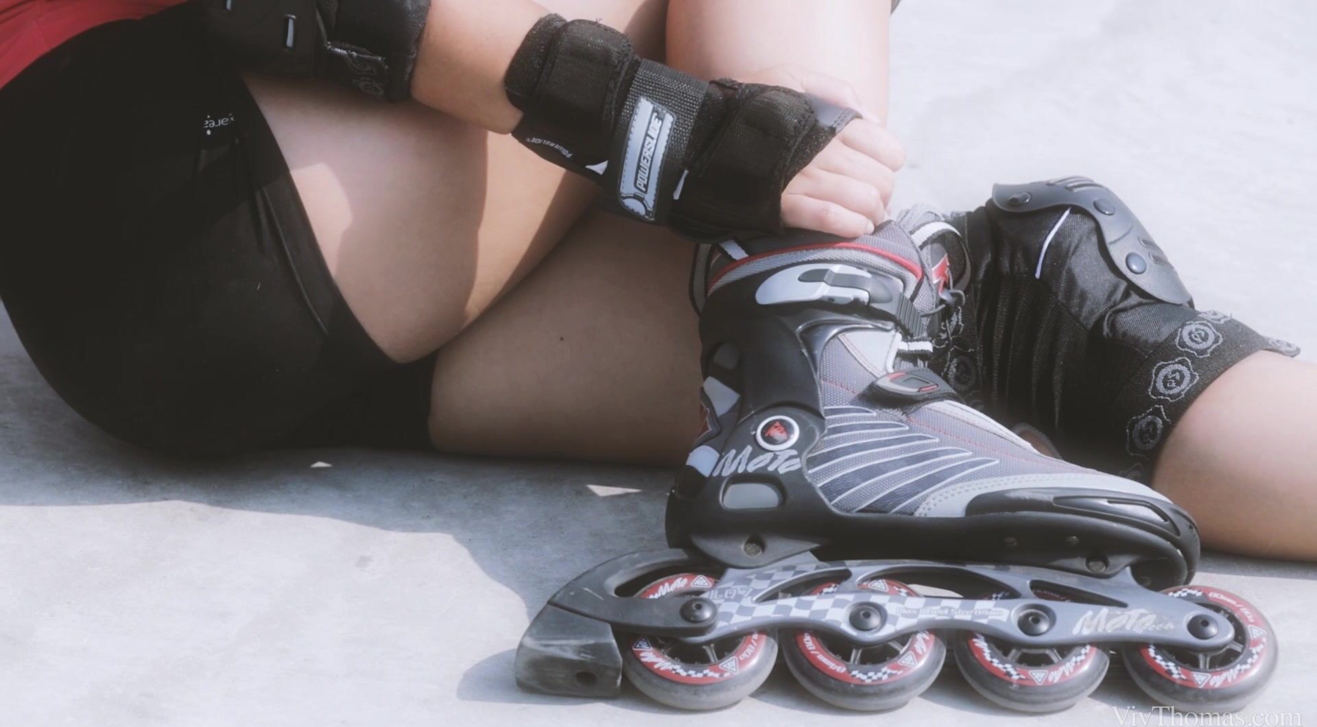 Episode three of “Sandra’s Sporty Girls” sees cute blonde Brandy Smile teaching sexy brunette Zafira how to rollerblade. Zafira might not be able to blade, but she looks damn good trying in her tight lycra shorts! Sadly, it all ends too soon when Zafira falls and sprains her ankle. Back home, Brandy applies an ice pack to Zafira’s ankle with much tenderness. But when she offers Zafira a massage those tender touches blossom. Zafira knows what Brandy really means and leans forward to kiss her on the lips. With open mouths, the babes explore each other’s tongues, their hands roaming over each other’s body. Brandy helps Zafira out of her top and bra, her heavy breasts springing free, then Zafira returns the favour, locking her lips around Brandy’s perky tits. Brandy pulls off Zafira’s shorts and panties, then buries her face between tanned thighs to lick Zafira’s clit, dipping her tongue into her snatch, wetting Zafira’s slim pussy lips. Zafira lies back on the dining table, the sweetest of desserts. Brandy is soon naked, climbing onto Zafira’s face in a sixty-nine as she wantonly sucks on her clit. Zafira’s fingers stroke Brandy’s slit, before she busies herself eating her wet hole. Brandy enters Zafira’s fleshy folds with two fingers, pushing her over the edge into a noisy orgasm. When she’s caught her breath, Zafira finger-fucks Brandy to climax as the cute blonde gropes and squeezes her big breasts. It’s a training session neither girl is likely to forget!