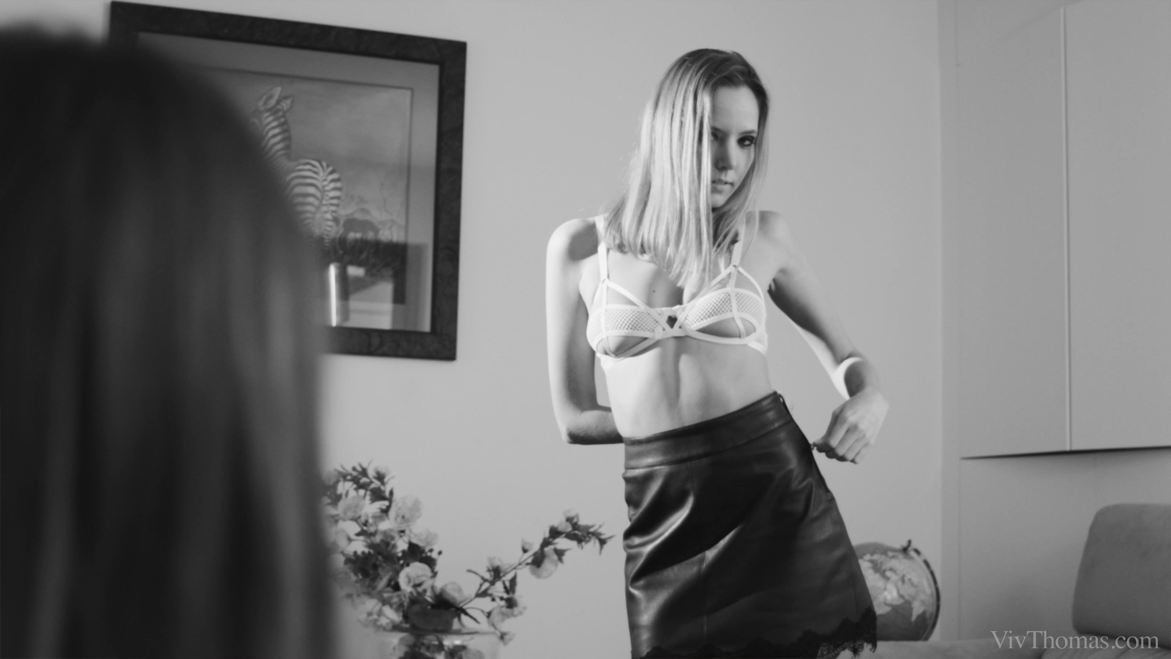 Mango dances sexily over the opening credits, before we see Talia Mint in the bathtub, writing in her diary. She confides that she is attracted to her new work colleague Mango, recounting her dream and masturbating as she fantasizes about the two of them together. Mango performs a slow, seductive striptease, the black and white sequence suddenly flooded with colour as we see her straddling Talia’s face to get eaten. She shudders with pleasure as Talia’s tongue hits the spot, spinning around into a sixty-nine to get rubbed to a climax. Mango slides a hand into Talia’s panties to stroke her, then peels them off, licking and fingering her to a mind-blowing climax.