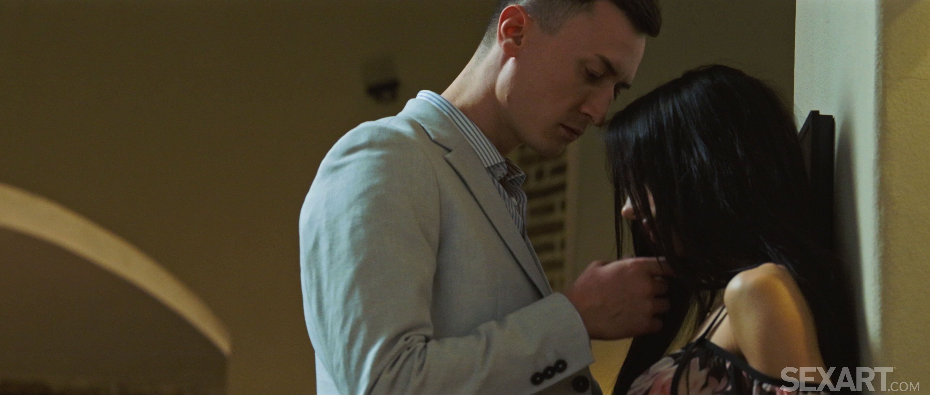 Gorgeous Kama Oxi makes seductive eye contact with Charlie Dean across the room. As Andrej Lupin’s erotic movie “Mystic Melodies” begins, Charlie approaches the raven-haired beauty and kisses her passionately, pressing her against the wall. He fondles her lovely breasts and sucks her nipples, then lifts her onto the kitchen counter, spreads her long legs and fingerbangs her shaved pussy to a powerful orgasm. Lifting Kama again, Charlie carries her to the sofa, where she straddles him and grinds in his lap. She frees his rigid cock from his jeans and impales herself on it, sliding up and down it energetically until she’s overwhelmed by another climax. Dismounting, Kama sucks her wetness from Charlie’s erection, before straddling him again, this time in reverse cowgirl. The lovers slam together vigorously, Charlie’s fingers on Kama’s clit to intensify her orgasm as he floods her pussy with hot cum.