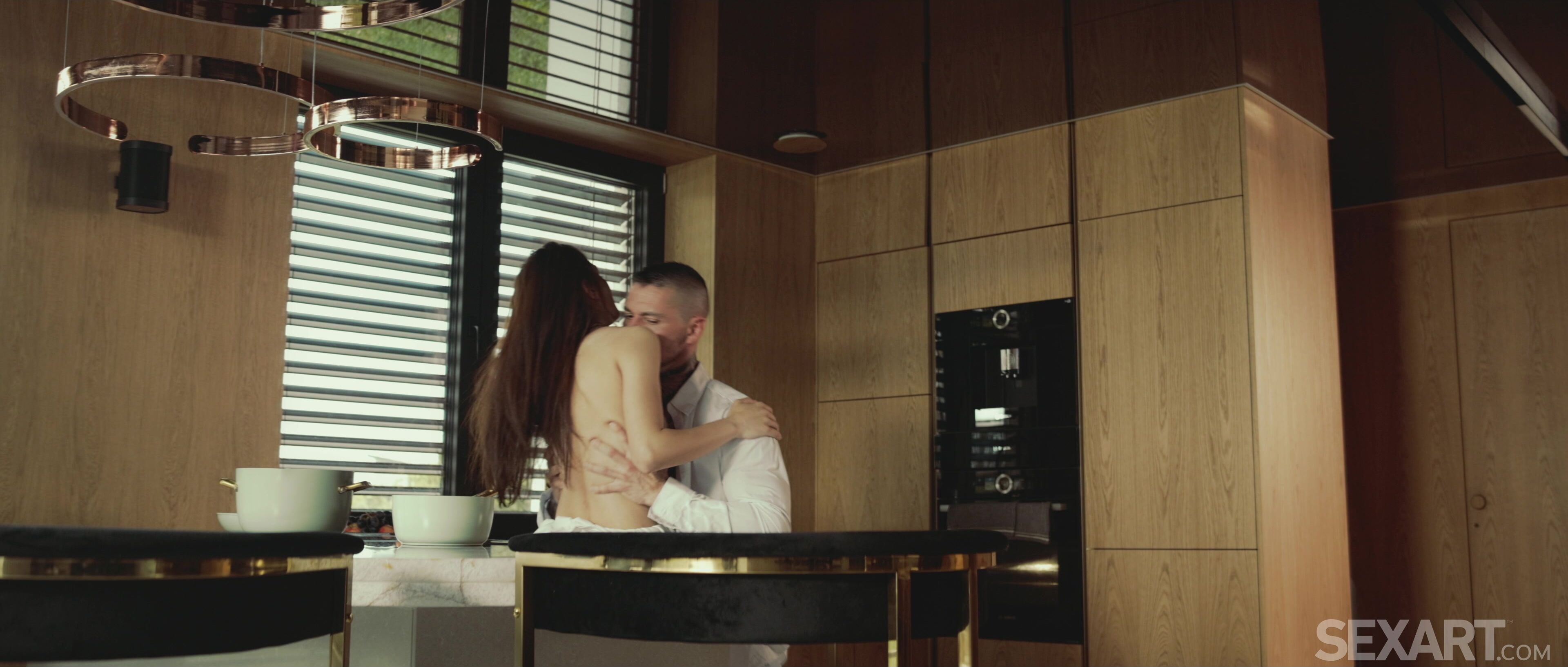 Cute brunette Julyana Rain responds eagerly to Angelo Godshack’s sensual embrace. As Andrej Lupin’s erotic movie “Surrender To You” begins, the petite beauty grinds against her lover and he caresses her gorgeous breasts, lifting her onto the breakfast bar and sucking her dark nipples to make them stiffen and throb. Angelo peels off Julyana’s panties and eats her shaved pussy, thrusting two fingers into her wet heat to drive her wild. Julyana kneels to take Angelo’s rigid cock in her mouth, gazing up at him as she licks and sucks it, then bends over the counter for him to penetrate her from behind. She gasps and moans as he slams into her in doggy, then lifts her onto a barstool so he can fuck her face-to-face. Kissing Julyana and strumming her clit as his thick cock slides in and out, Angelo gives her an intense orgasm before filling her with hot cum.
