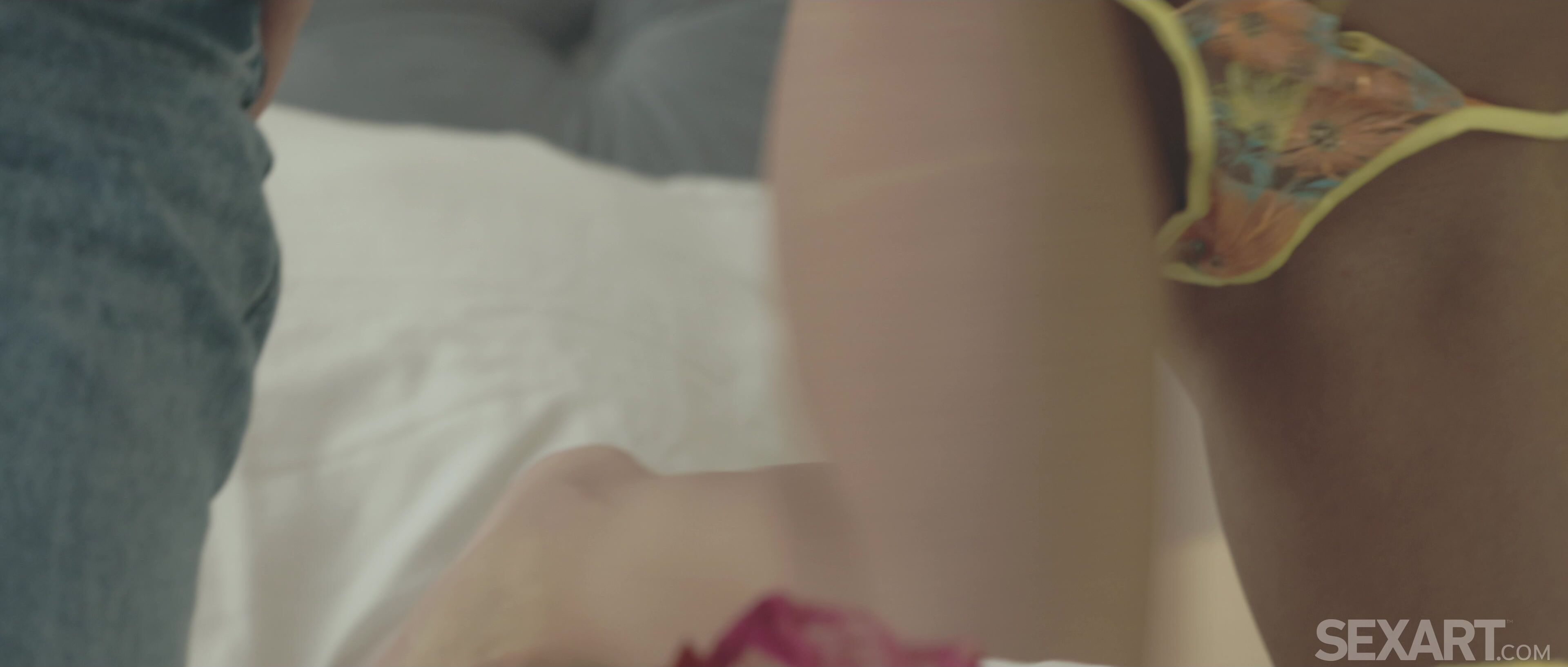 Cute Lovita Fate is relaxing on her bed, chatting on the phone, as Andrej Lupin’s erotic lesbian movie “Love In Lace” begins. She’s interrupted by the effervescent arrival of Alexis Crystal, who leaps onto the bed giggling, eager to show her girlfriend the sexy lingerie she’s just bought. The lovers try on complementary ensembles, admiring how they look and touching each other flirtatiously. Alexis is soon stroking Lovita’s pussy inside her new panties, then tugging the flimsy fabric aside so the perky blonde can ride her fingers vigorously. Lovita sucks Alexis’ stiff nipples, then laps at her clit and fingerbangs her juicy slot until the powerful sensations are driving her wild. She straddles Alexis in a hot sixty-nine so they can lick each other’s pussy in unison, then dismounts so Alexis can focus all her attention on teasing her asshole and frigging her doggy style, giving her an intense orgasm. Lovita repays the favor, diddling Alexis in spoons to make her climax too.