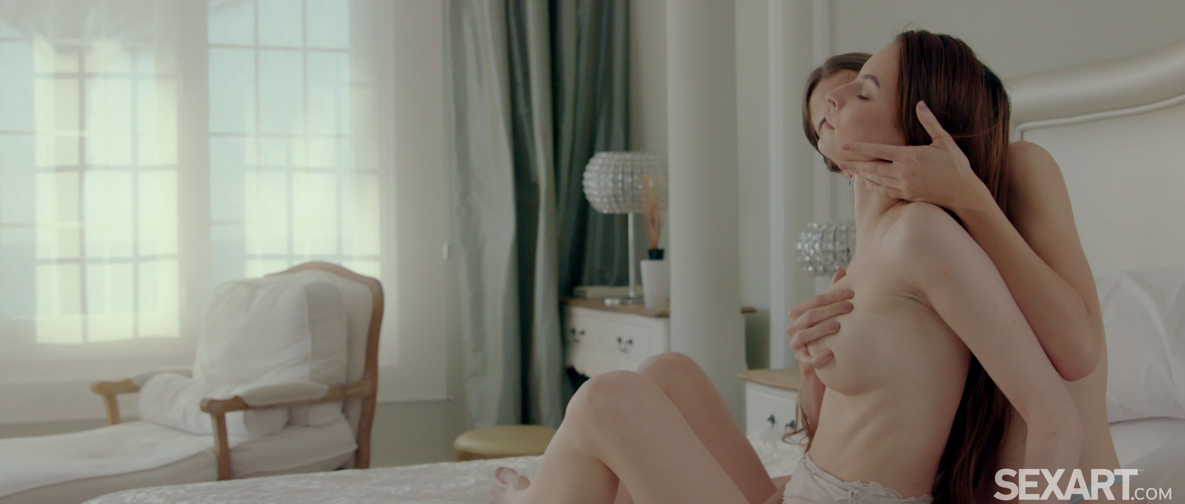 Sexy brunette Loren Sun reveals that she has never had a lesbian experience, not even a kiss, as Andrej Lupin’s hot movie “Dreaming About A Girl” begins. Her cute friend May Popiense is eager to teach her, and their playful kisses and flirty touches grow more passionate as Loren proves to be a fast learner. Mary pulls down Loren’s lace lingerie and caresses her beautiful breasts, sucking her nipples to make her gasp with arousal. Kissing her way down, Mary licks and strokes Loren’s shaved pussy, fingering her to a frantic orgasm. Loren reciprocates enthusiastically, fondling Mary’s breasts and rubbing her puffy clit, making her tremble and moan through a powerful climax. Loren doesn’t stop, using her fingers and tongue to give Mary another intense orgasm before the lesson in lesbian loving is complete.