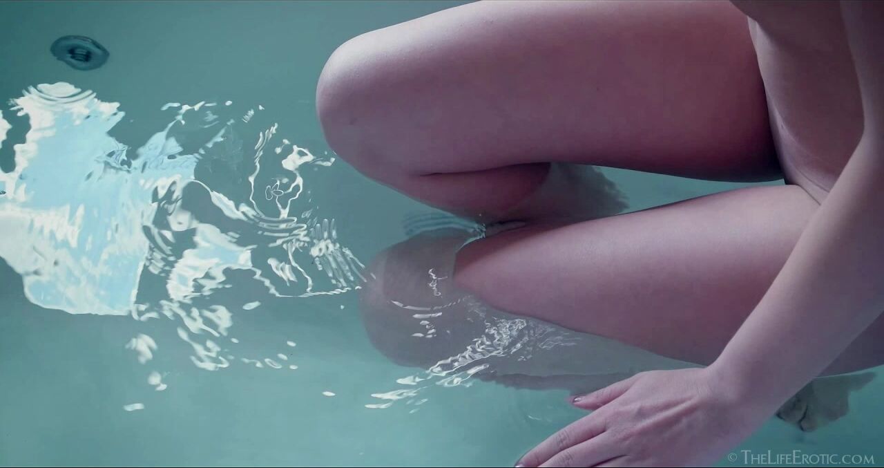 Lisa, a gorgeous blonde with perfect breasts and a shaved pink pussy, steps naked into a large bathtub. She relaxes in the warm water, her long hair fanning out as she allows herself to sink beneath the surface. Her hands begin to wander over her beautiful body, stroking and massaging, and she soon seems lost in pleasure. They linger on her tits then trail down to her pussy to splay her lips under the water, stretching her wide open. Her fingers soon get to work, slipping inside of her and causing all kinds of ripples as she squirms and grinds against them. Arching her body, she humps her crotch clear of the water, creating even bigger waves and splashes as she makes herself cum. Next, she sits on the edge of the tub and squirts creamy lotion on her breasts. She starts out rubbing it in then massages them sensually, bringing herself to another rapid climax. Her shaved snatch then gets similar treatment – she drizzles it with lotion then frigs herself hard and fast again, her fingers a blur and the lotion whipped to a bubbling white foam. As her orgasm begins to build we get a brief voyeur’s view in through the bathroom window of her stunning, rounded ass. Back indoors, she is using both hands to tease her slit and crack, then she gets on fours. She drips lotion on her lower back and uses it to lube her asshole, so it’s ready to take her fingers. She allows the water to drain away, leaving her body exposed as she goes back to playing with her pussy, rolling and sliding around in the empty, slippery tub until she cums to one final, explosive climax. Seemingly overwhelmed with pleasure, she curls up, her fingers trailing soothingly over her sensitive curves, then homing in on her pussy once again as the picture fades…
