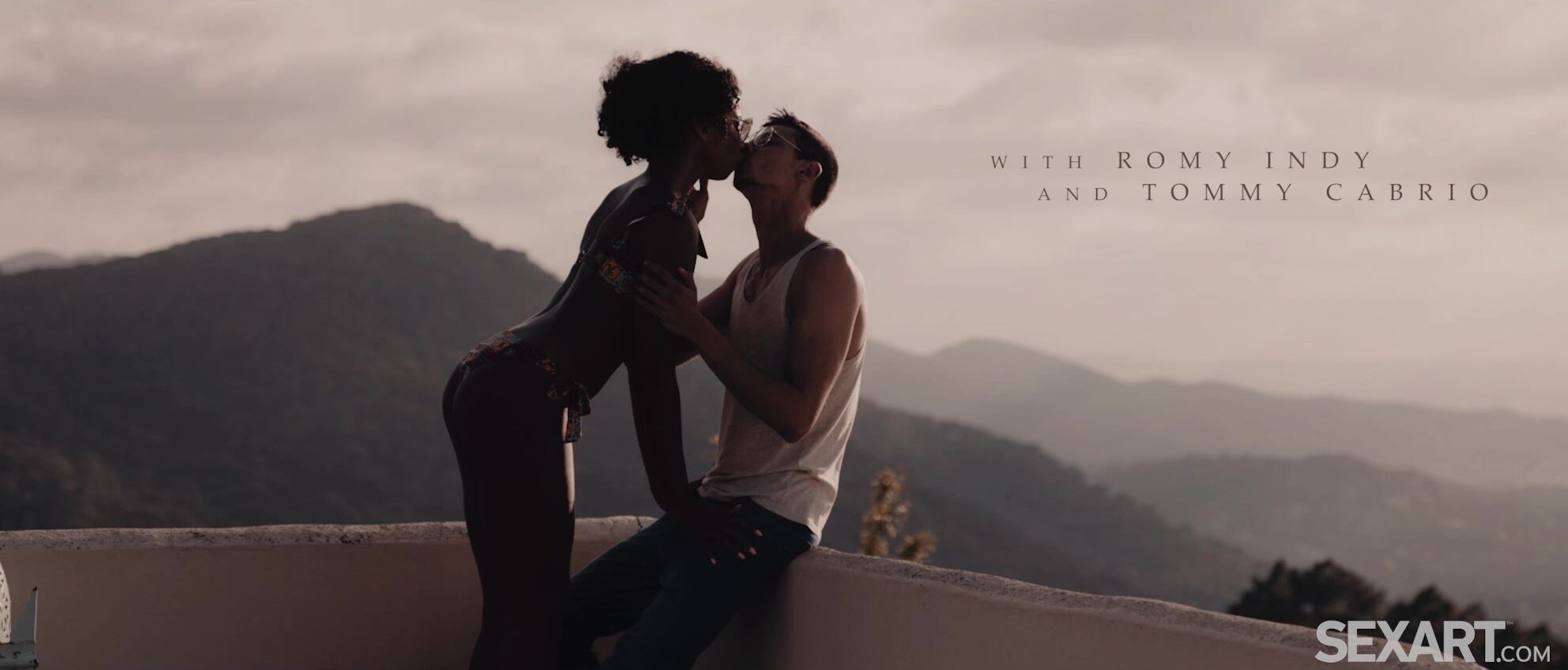 Gorgeous Romy Indy looks stunning in a skimpy bikini, as she chats with Tommy Cabrio on the terrace overlooking a magnificent mountain view. As Andrej Lupin’s erotic movie “Magic Of The Moment” begins, the lovers kiss and touch tenderly. Romy straddles Tommy so he can caress her lovely breasts and finger her pussy as she grinds on him. Taking his rigid cock between her lips, she sucks it avidly, then moves astride him again to ride him in cowgirl. Tommy groans as Romy rocks her lithe hips to stir his cock around inside her while she slides up and down on it, her sexy ass jiggling alluringly. Flipping Romy onto her back, Tommy fucks her in missionary, then switches to spoons. He drives her to an intense orgasm as he fills her with a hot creamy load, by the light of the setting sun.