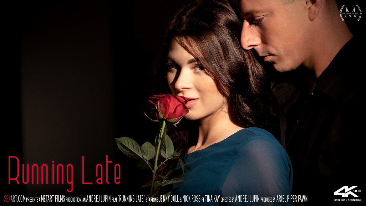 Cute brunette Jenny Doll waits impatiently for Nick Ross, who is “Running Late” for their date. As Andrej Lupin’s erotic movie begins, Nick sprints through the city to meet Jenny, apologizing profusely until she kisses him to let him know he is forgiven. Back home, their passion rises, their embrace tender and sensual. Nick undresses his petite sweetheart, eating her shaved pussy until it spreads open for his probing fingers, her moans of pleasure mingling with the sticky sounds of her arousal. Jenny has a breathless orgasm before straddling Nick and impaling herself on his stiff cock in cowgirl, her perfect ass bouncing in his lap as she slides up and down his thick shaft. They rock together, another powerful climax sweeping through Jenny’s body, leaving her trembling in her lover’s arms. Nick flips her onto her back and drives into her in missionary, rubbing her clit as he fucks her to a string of noisy orgasms and fills her with his hot cum. Watch through the closing credits for a different take on their romance…