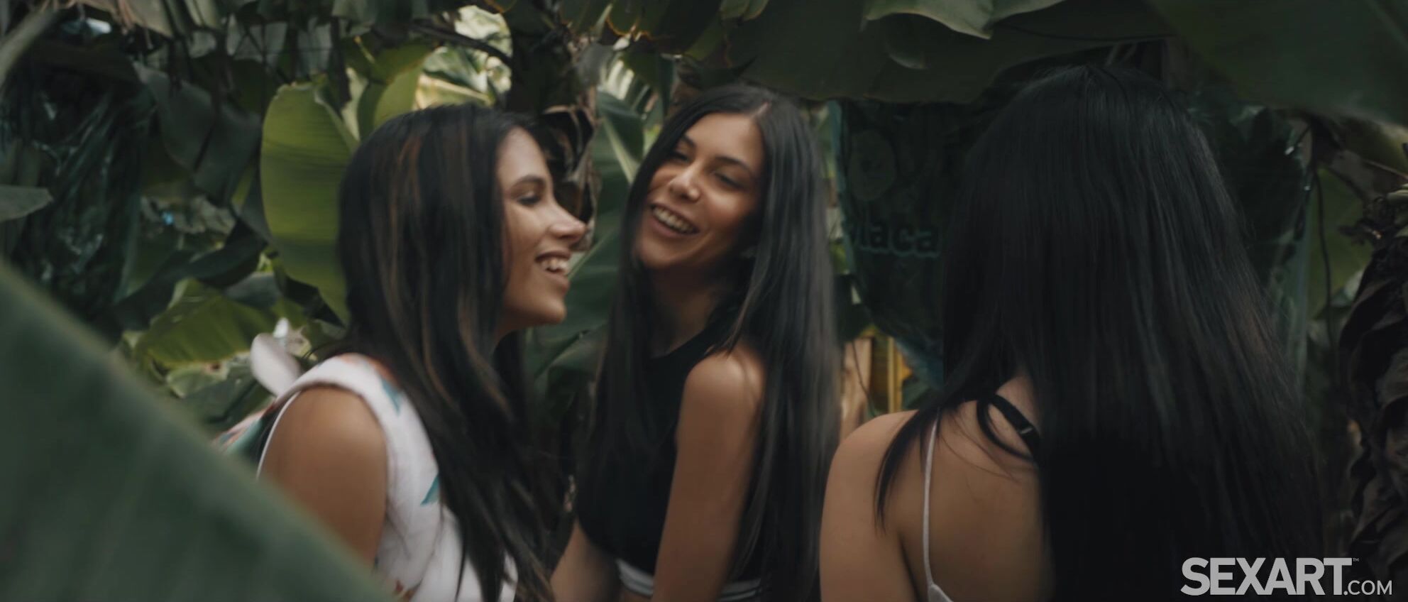 Three gorgeous girls are hiking across the sun-drenched vacation island of Tenerife, as Andrej Lupin’s hot lesbian movie “Adventurous” begins. Bold Anya Krey leads the way, followed reluctantly by Baby Nicols and Mina Moreno, who are nervous about venturing into a banana plantation. When Baby starts to complain, Anya silences her with a kiss, pushing her against a tree. Mina joins the threeway kiss eagerly, tugging Baby’s shorts down and stroking her shaved pussy until she starts moaning with arousal instead. Mina kneels and eats Baby’s pussy voraciously, while Anya masturbates as she tweaks and sucks Baby’s nipples. Mina adds her fingers, giving Baby an orgasm made all the more explosive by the risk of discovery. Now Mina is sandwiched between her two girlfriends, as Baby gropes her beautiful breasts while Anya licks and fingerbangs her shaved pussy, making her climax breathlessly. It’s Anya’s turn to get all the attention at last, and she parts her thighs to let both her girlfriends frig her to an intense orgasm before they dress hurriedly and rush away from the curious plantation workers.