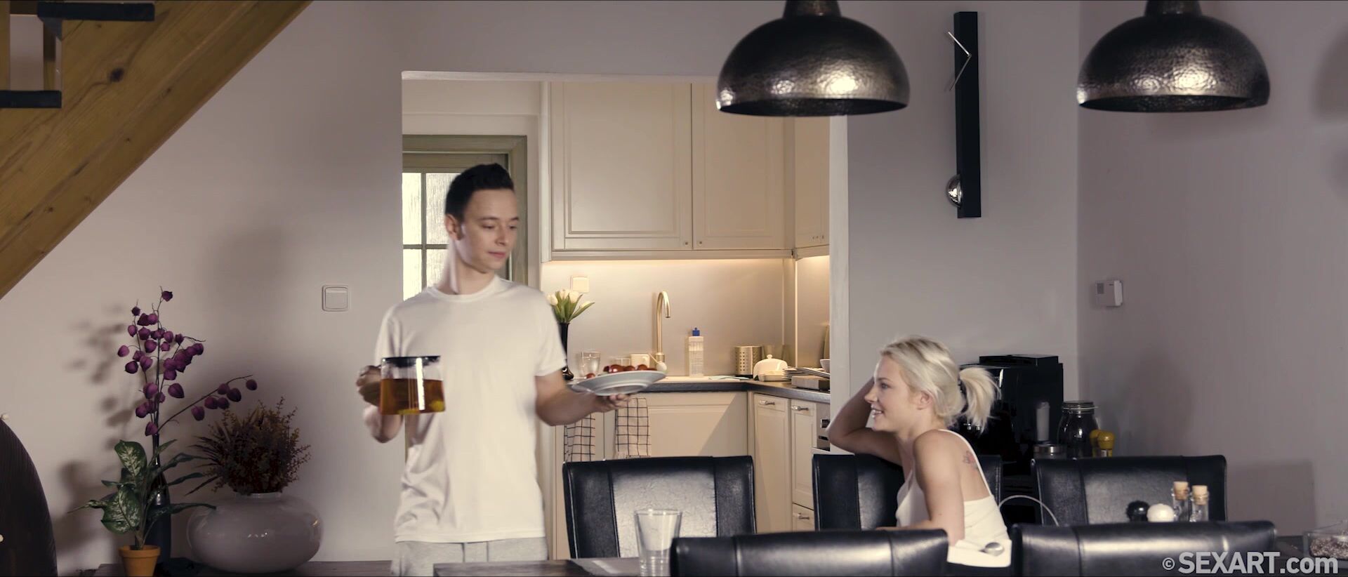 Cute blonde Zazie Skymm awakens beside her boyfriend Nikky Nutz, as part two of Andrej Lupin’s erotic series “Prague Fudge” begins. She kisses him gently until he stirs, then slides a hand beneath the bedcovers to rub his cock until it’s rigid. Taking it in her mouth, she jerks and sucks it eagerly, bobbing her head to take it deeper with each stroke. Peeling off her lace panties, Zazie straddles her man in cowgirl and guides his stiff pole into her shaved pussy. She slides up and down on it, making enough noise to alert her cute friend Frida Sante, who creeps up the stairs to listen to the couple having sex. Frida touches herself as she watches Zazie bounce on Nikky’s dick, her beautiful perky breasts jiggling alluringly. They roll over into missionary, Nikky going down to eat Zazie’s juicy pussy until she cums, then thrusting back into her. She lifts her legs over his shoulders and gazes into his eyes as he fucks her to another intense orgasm, followed by a third as he fills her with his hot load. He even makes them all breakfast, ready for another day of fun…