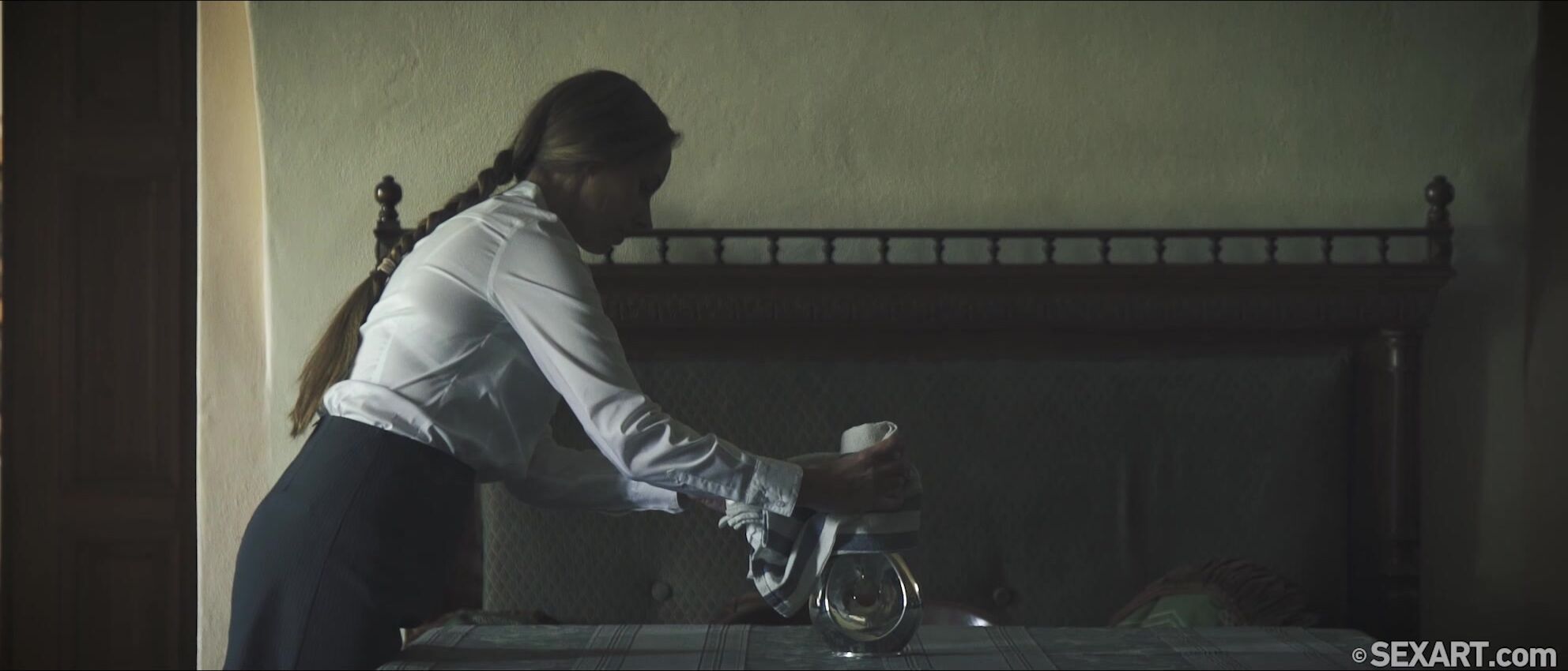 A cute housemaid is doing chores in the country house where she works, as Andrej Lupin’s erotic movie “Kinuski’s Dark Fantasy” begins. She sits down at the piano and begins to play, her mind full of daydreams about her mistress, sexy blonde Cherry Kiss. She imagines Cherry dominating her, pulling off her bra roughly to expose her beautiful breasts, ordering her to strip and touch herself while she watches and masturbates avidly. Cherry licks her maid’s shaved pussy, making her moan through the hand that covers her mouth. Submissive Kinuski sucks the pretty toes of her mistress, then eats her pussy and ass from behind, her skilled tonguing earning Cherry’s praise and driving her to an intense orgasm. Cherry positions her maid face down on the bed and spanks her ass, then fingers her tight pussy deep and hard, making her climax. Now Cherry sits on Kinuski’s face, grinding as she gets licked until she orgasms again. Putting Kinuski on her back with her legs over her head to splay her pussy open, she frigs her until she is begging to cum. Sitting at the piano, Kinuski’s filthy fantasy leaves her glowing with satisfaction.