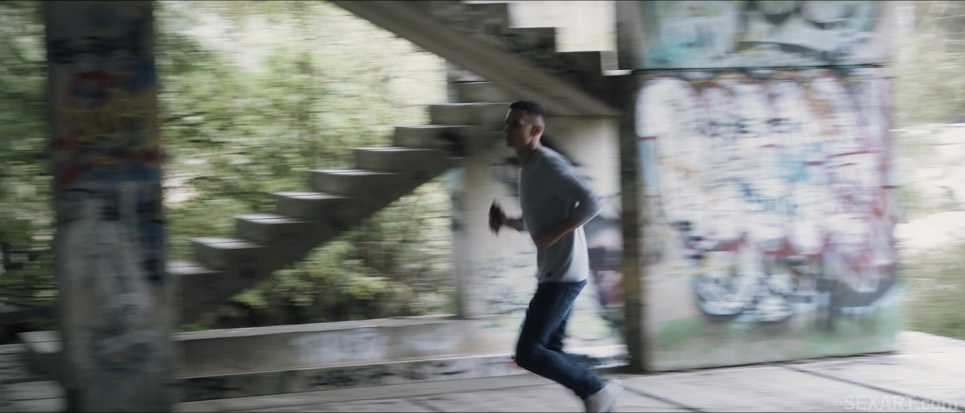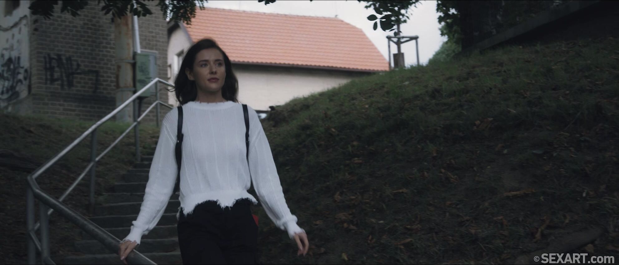 Stunning brunette Sybil A texts her boyfriend from the train on her way to their rendezvous, as Andrej Lupin’s erotic movie “Follow My Footsteps” begins. Charlie Dean gets dressed and heads out to meet her, leaving the station and walking through the park as she sends him clues to her location. Finally, she texts him from his apartment, where she’s waiting for him on the bed, irresistible in sexy lingerie. United at last, they kiss tenderly, Charlie pulling off his sweetheart’s white lace bra to caress her perfect breasts. She frees his stiffening cock from his jeans, gazing up at him adoringly as she strokes and sucks it voraciously. Stripping naked, Sybil straddles her man in cowgirl, sliding up and down on his thick dick, her hips rocking sensuously. She wriggles up to sit astride his face so he can lick her pussy, tongue working between her smooth, plump lips. Moving into missionary, Charlie fucks Sybil with long, slow thrusts, then goes down to finger and eat her soaked pussy. They switch to spoons and he drills her to a breathless orgasm as he fills her with his creamy load.