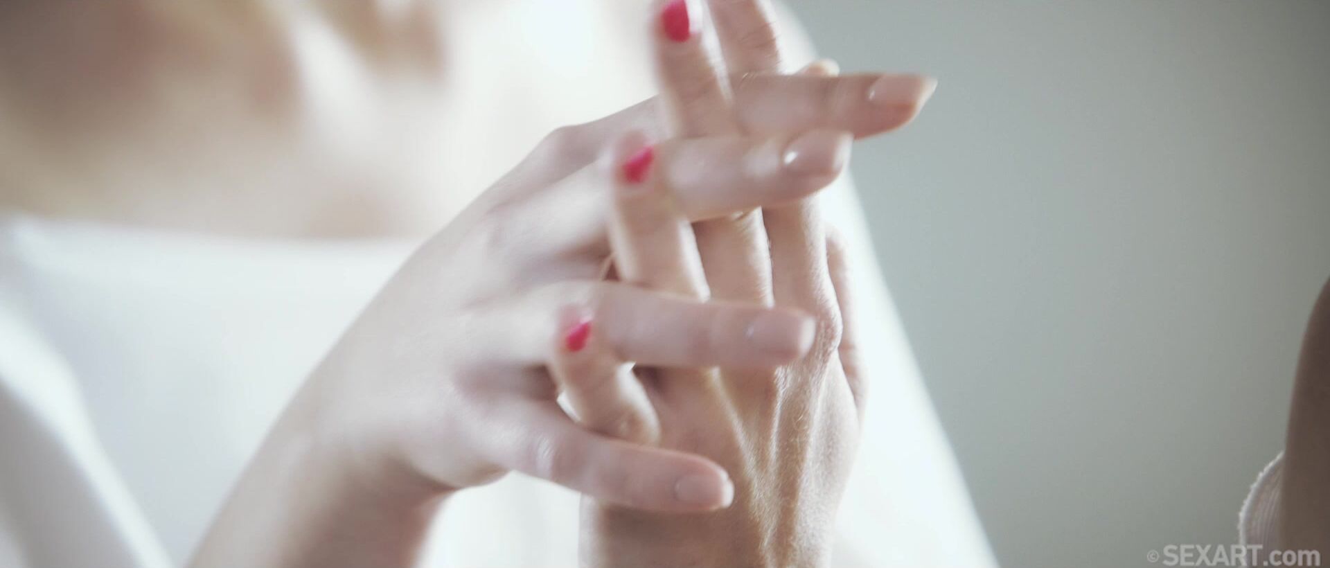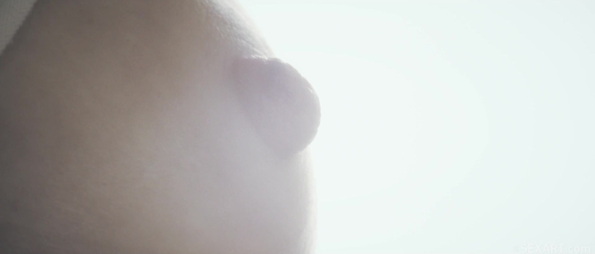 So close you could reach out and touch them, the camera gets in tight with luscious lesbian lovers Alexis Crystal and Amaris in Andrej Lupin’s erotic movie “Close Up,” as they lock lips and squeeze nips, setting each other up for a pussy-eating, finger-banging fuck fest. We follow the lovers’ hands and mouths as they come together, watch every strand of saliva snap as they kiss and break apart, see their nipples stiffen in close up as each beautiful babe teases the other to breaking point. At last the camera pans out to the sight of gorgeous blondes Amaris and Alexis Crystal, both dressed in white, kneeling on the bed. Zooming back in on Alexis’s hands, she lifts her lover’s top while the camera focuses on one breast, the nipple revealed, fingers toying with it sensually. Amaris falls back onto her hands to watch her sweetheart suck on her titties, rising only to pull Alexis’s top up. She licks her fingers and then the camera joins those wet digits as they come to rest on her girlfriend’s darker nipples, rubbing them stiff until they jut out like diamonds. Amaris runs her tongue around them, making her squirm with pleasure, then rubs her pussy through her panties. When she tugs them aside and strokes her clit, we see every subtle ridge and crease in delicious detail. Amaris laps at her lover’s shaved pussy, tongue feeling its way between her plump labia, and Alexis closes her eyes, overwhelmed by the powerful sensations. The camera closes in on the sight of Amaris’s fingers inching their way inside, pussy glistening with saliva and juice, driving Alexis to an intense orgasm. But she’s not done yet, licking up the wetness she’s created, making her cum again. The camera captures Alexis’s red nailed fingers as she plays them through Amaris’s pink folds, sliding through her wet crease, seeking out her clit. She laps at her pussy, spreading her lips open, perfect ass in the air as she eats her avidly. Amaris straddles Alexis, climbing over her pretty face, grinding on her waiting tongue. With cinematography so intimate you’ll feel like you’re right there with them, “Close Up” is an erotic feast for the senses.