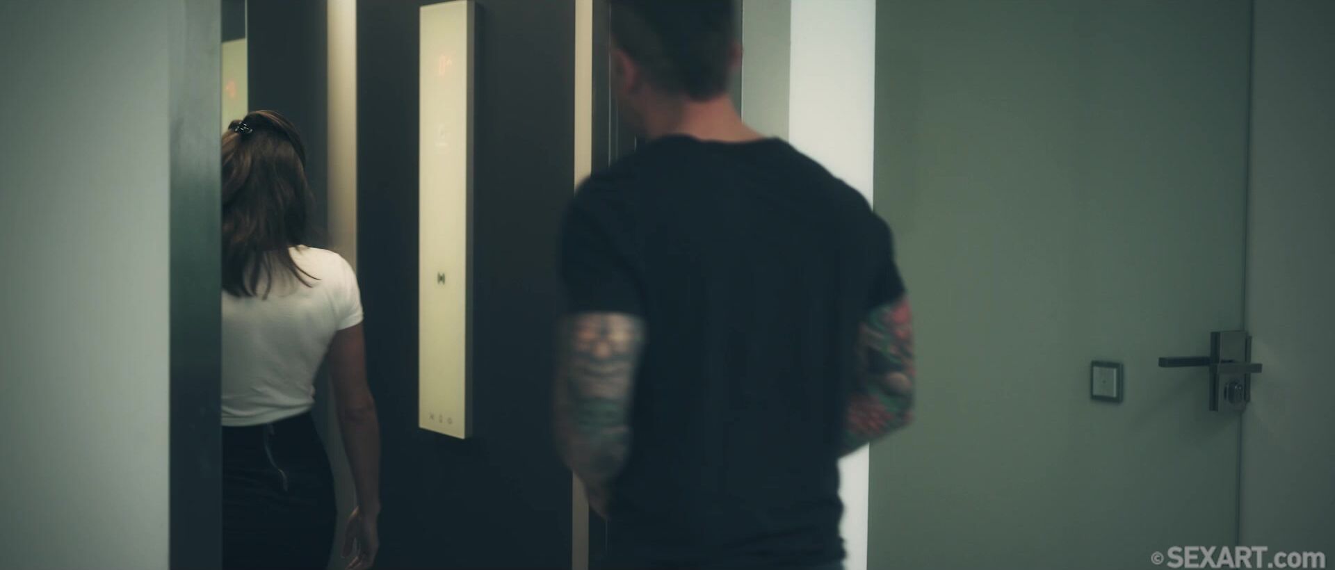 It’s lust at first sight when gorgeous brunette Sandra Wellness rides an elevator with tattooed stud Juan Lucho, as episode two of Andrej Lupin’s erotic movie series “Elevator” gets underway. Next time they meet, they exchange cellphone numbers, and before long they are kissing passionately as they ride up to Juan’s apartment. Once inside, sexy Sandra soon has Juan’s jeans unzipped and his hard cock in her hand. As she strokes it, he lowers her figure-hugging dress to her waist and flicks his tongue over her stiffening nipples. He sits and lets Sandra feed his cock into her mouth, clamping her lips around its thick girth and bobbing her head up and down the shaft, taking it deep. Eager to fuck, Sandra gets naked, straddles Juan and sinks his pole deep inside her wet, shaved hole. She rides him in cowgirl eagerly, making sure his huge cock penetrates her to the max every time she slams back onto it. With Juan holding her by the hips, Sandra increases the intensity of her humping until her body undulates wildly in the grip of a powerful orgasm. They move into doggy position, Sandra’s ass up high as Juan plows into her from behind. He stops and remains still so Sandra can fuck herself on his cock, sliding on and off him, winding her hips to increase the arousing sensations. Juan flips her over to eat her juicy pussy and tight puckered asshole, then eases his dick into her in missionary, squeezing her breasts as he increases the pace of his thrusts. She gazes into his eyes as he screws her to another climax, then pulls out to let her jerk out his load over her belly and breasts. These horny neighbors look set to ride together every chance they get.