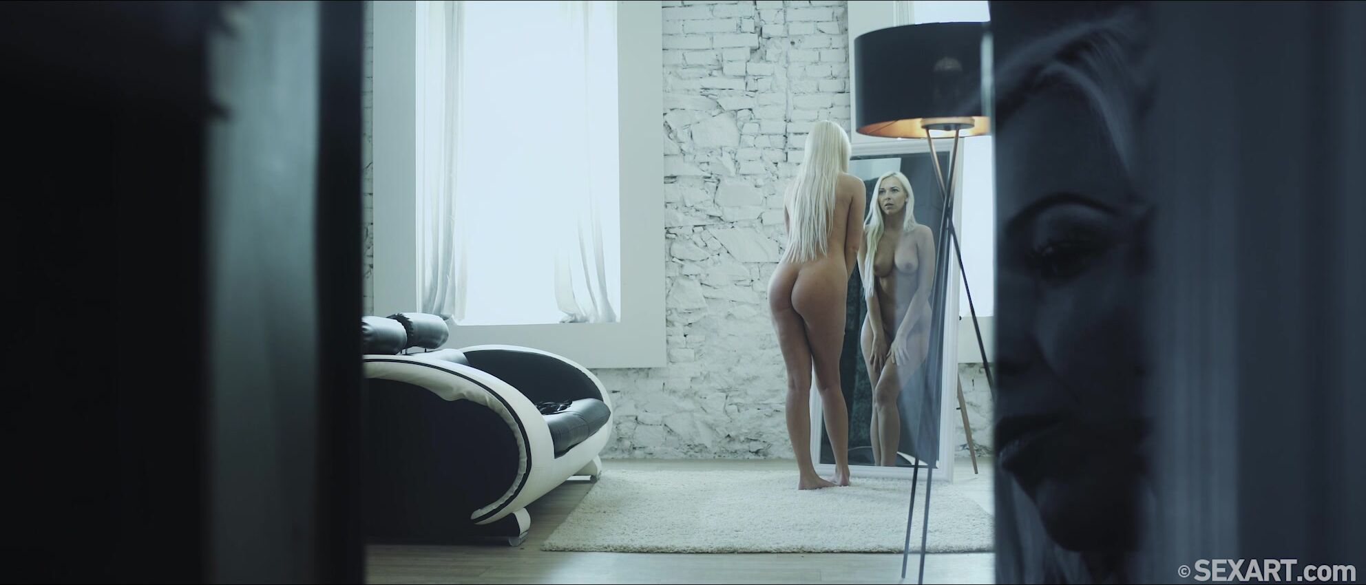 Hot blonde Karol Lilien admires her curvy, naked body in a mirror, before dressing in sexy black lingerie, stockings and heels, as Andrej Lupin’s dynamic erotic movie “Slow Tease” begins. Karol covers herself with a black silk robe, and awaits the arrival of her man. When Maxmilian Dior shows up, Karol fixes him with a sultry stare. He responds by showering her with sensual kisses. Karol sheds her robe and pushes Maxmilian onto the couch, unzipping his pants and stroking his huge, erect cock with both hands. She runs her tongue up and down the shaft and circles it around the head, before feeding his cock between her luscious lips. Gazing up at him seductively, the blonde bombshell gives him a beautiful blowjob that renders him silent with lust. Karol straddles Maxmilian and strokes his cock against her lace-covered crotch while he sucks on the erect nipples of her lovely big breasts. She makes him wait a little longer, standing to peel down her lingerie and push her curvaceous ass in his face. She gasps with arousal as he eats her shaved pussy from behind, then straddles his lap again, this time impaling herself on his thick pole. Once she gets into her rhythm, she goes wild, humping and grinding and howling in ecstasy. Spinning around into reverse cowgirl, she rides even more frantically, bouncing on his length as he rubs her clit until she shakes through an uncontrollable climax. Maxmilian kneels to eat her drenched pussy and then plunges back inside her in missionary, fucking her to another screaming orgasm before shooting his hot load inside her. What started as a “Slow Tease” ends in frenetic pleasure for them both.
