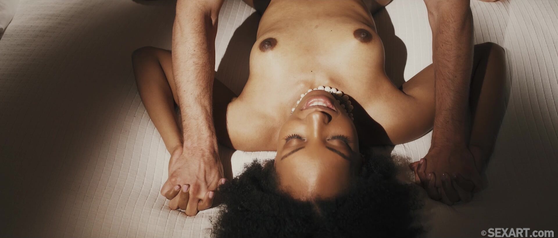 Glimpsed through the window, ebony beauty Sade Rose is preparing food in the kitchen as Andrej Lupin’s romantic “Time For Us” begins. The picture of domestic harmony is completed as Kristof Cale greets her with a hug, and is rewarded by her stunning smile. The lovers set the table for dinner on the terrace, Sade looking adorable in a short yellow dress that barely skims her thighs. She soon abandons her meal to sit on Kristof’s lap, feeding him mouthfuls of his dinner between kisses. They finish their wine by the pool, then move to the bedroom to undress each other, Sade’s silky skin gleaming in the soft light as Kristof sucks her nipples. He moves between her thighs and slides his stiff dick into her slick shaved pussy, fucking her slowly and steadily in missionary, gradually increasing the pace as their passion builds. They move into spoons without disengaging, Kristof thrusting harder and faster now, Sade’s fingers a blur as she strums her clit to a quiet but intense orgasm. She straddles her man, beautiful breasts bouncing as she rides him, rising and falling on his cock tantalizingly slowly, then bucking on him until he fills her tight pussy with his hot load. “Time For Us” is a tender study of erotic bliss.