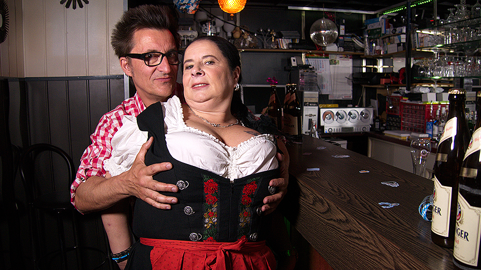 Big breasted German waitress having fun with the beerfesten