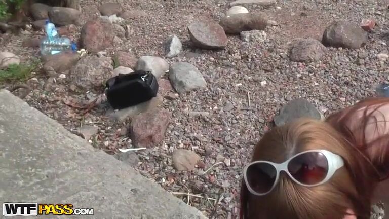 Redhead foxy real outdoor sex paid by dudes