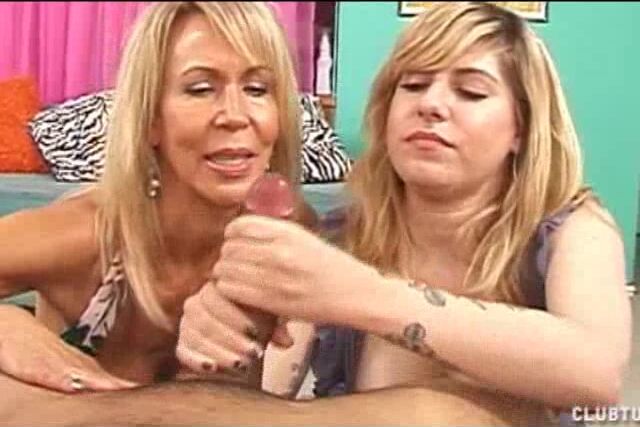 Since her hubby is away Milf Erica is bored and horny. The perverted mom decides to teach teen Jackie to jerk off the big dicked neighbor. When she invites him over, the teen is shocked at the massive size. They practice on a dildo in front of him when he cant take it anymore and whips it out, the duo jerks and spits on his cock until they are blasted with a massive cumshot.