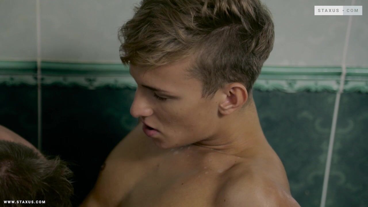 There’s a distinctly thoughtful, even artful feel to the opening moments of this stunning little escapade between everyone’s favourite twink slut, Lukas Drake, and butch strongman, Filip Bethsaida – the kind that rarely if ever makes an appearance in porn. In the depths of despair, Drake drinks himself silly and heads for the railway tracks to end it all, only for Bethsaida to serve as a knight in shining armour – or in this instance a rather trendy cardigan! – as he carries the forlorn young man back to his house to nurse him to health. Which in this particular instance clearly involves stripping the lad off, sitting him in the bath and showering him down. It’s a somewhat unusual means of rehabilitation given the circumstances, but it has to be said it certainly seems to lift the young boy’s spirits; and before you know it Drake is laid out on his hero’s laps and allowing Bethsaida to soap and finger his ever-hungry little arse-hole. Which in turn very quickly leads to both fellows taking it in turns to suck each other’s now-straining cocks. Of course, you don’t need to be Sherlock Holmes to realise how matters are set to proceed; and it’s really no time at all before the older stud is taking full advantage of the situation by ploughing deep into Drake’s pucker with that handsome schlong of his. It’s a move that the cute little twink appreciates to the max. So much so, in fact, that he’s quite literally erupting mid-fuck; before falling to his knees and allowing Bethsaida to dollop a load of spunk all over his tongue, which he dutifully gobbles up. Has there ever been such a good boy?!