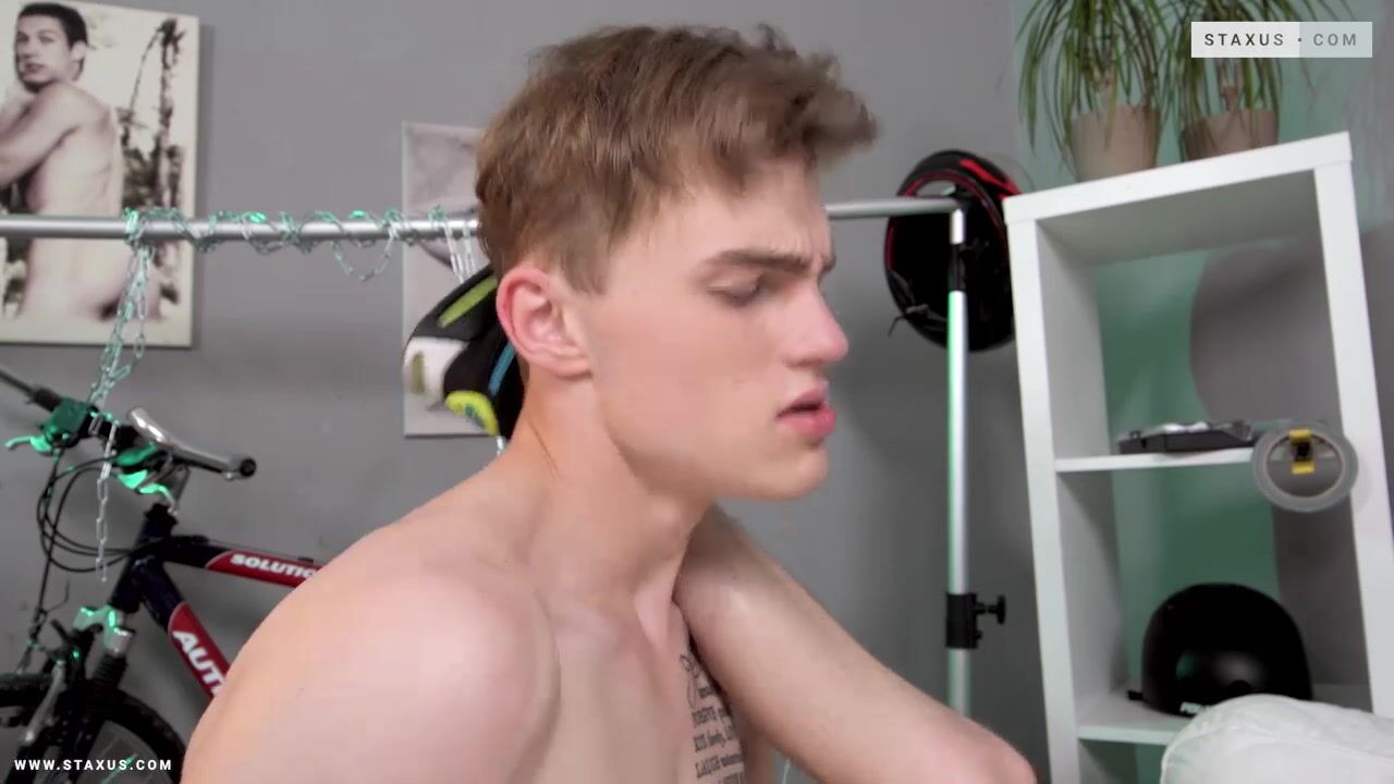 Kellan James is a young man of many talents – one of which, it seems, is the ability to pick things up off the floor using his feet. Whether that’s the aspect of this spunktastic scene with Johnathan Strake that you’ll end up remembering is open to question, of course; but it certainly adds a certain curiosity to the first few moments here, as he carries out some maintenance to his bike ahead of the arrival of Strake, who (not surprisingly) immediately distracts the fellow with a horny smooch. It’s a move that quickly has the desired effect on James, that’s for sure; as the now horned-up biker promptly switches his attention away from his cycle in favour of his pal’s thick, engorged salami, which he begins to feast upon with undisguisable relish. Then again, who can blame the guy? Strake has a dick to die for, after all. Not only that, however, but the lad also possesses a handsome pair of bollocks that James is only too eager to nuzzle and worship. But there’s no denying the fact that James’s keenest attention is on his buddy’s hungry little ass-hole; and having allowed Strake a rigorous slurp on his own cock in return, the fellow is soon rimming and fingering Strake’s pucker like a being possessed. Cue a fantastic arse-buggering session that sees the young lad pummelled in a series of hot positions; and culminating in some rather kinky sex play that involves James thrusting a screwdriver up the sweet boy’s hole. It all proves way too much for Strake, who is soon exploding right across his own belly; before James finishes the round by jerking out a wad into his pal’s mouth!