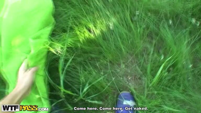 Playful bimbo sexy outdoor fucking on a glade