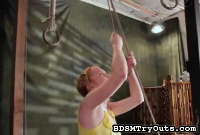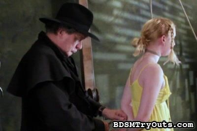 Delilah is only 18 but she loves device bondage more than anything. This blonde chick is going to get choked with ropes like she is planning to hang herself and that is making her cruel master very horny, there is no doubt about that. He loves to watch her teeny nipples through her yellow tight fitting tank top as she is moaning and screaming in the basement. There was no time for her to take off her white lace panties but that is because she wanted to please her master as soon as possible. The time has come for her to push that bottom out and show it to the world and Delilah did it with pleasure. There were scars all over her body since believe us - this is not the first time that Delilah is getting her ass spanked, and not only her ass... She likes pain but she likes pleasure as well and when she is playing the BDSM games, it is a nice mixture of both. It is only a matter of time when this darling is going to cum real hard and maybe even squirt all over the place.